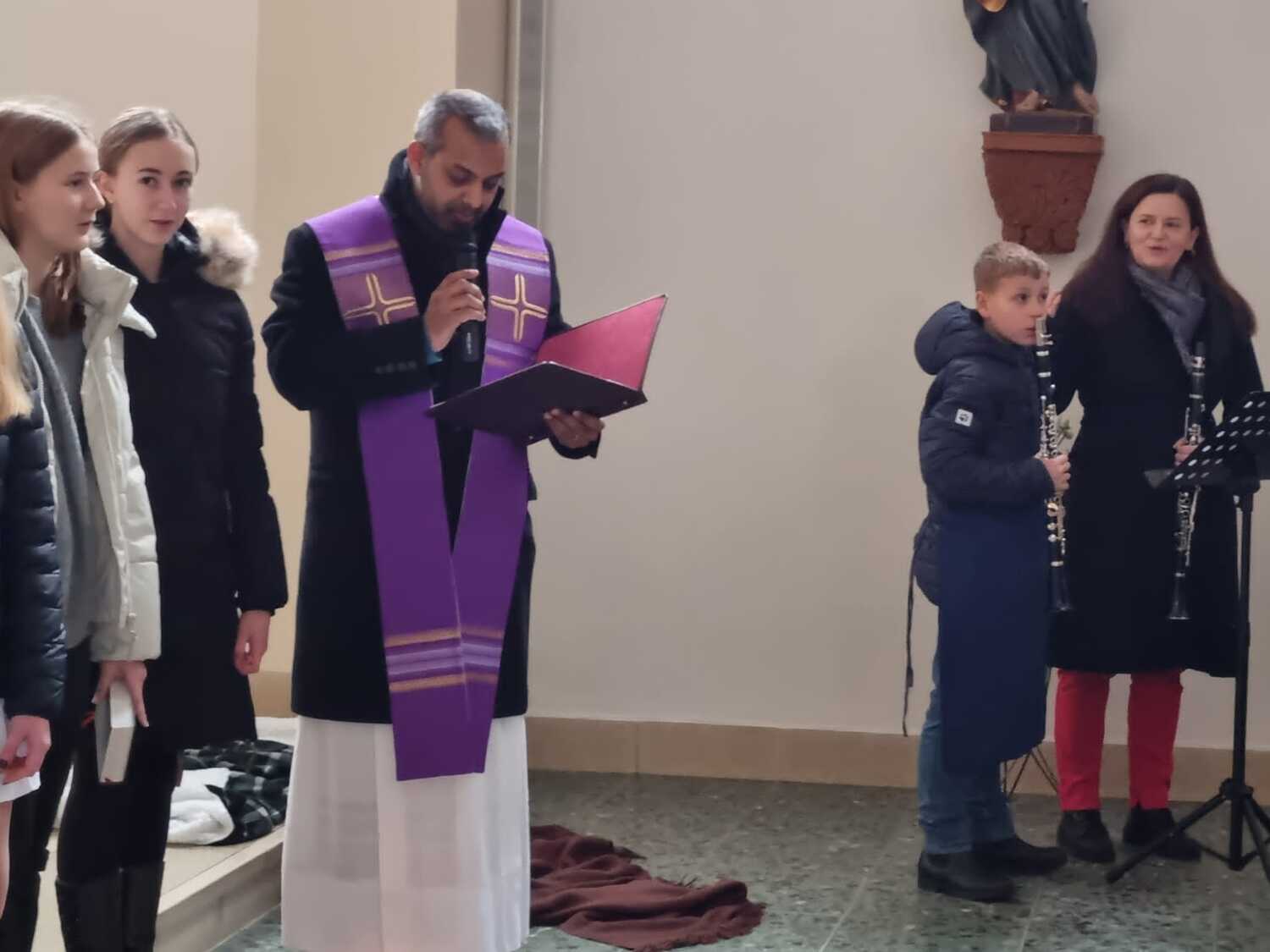 Mit Liedern, Musikstücken und dem Segen vom Pfarrer Shinto wurde die Andacht für die Kinder und den zahlreichen Besuchern zu einer schönen Einleitung für den Heiligen Abend.