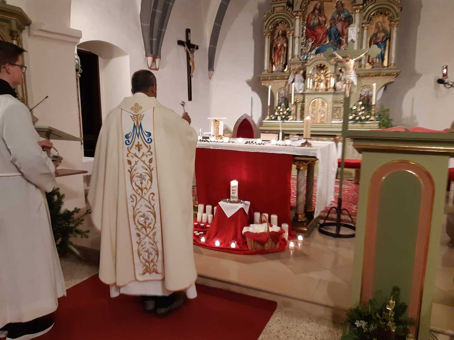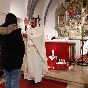 An diesem Abend wird auch mit zur Kreuzform gebundenen Kerzen der "Blasiussegen" erteilt. Der Heilige, dessen Namenstag am 3. Feber gefeiert wird, war ein frühchristlicher Märtyrer und wird als Schutzpatron bei Halskrankheiten verehrt.