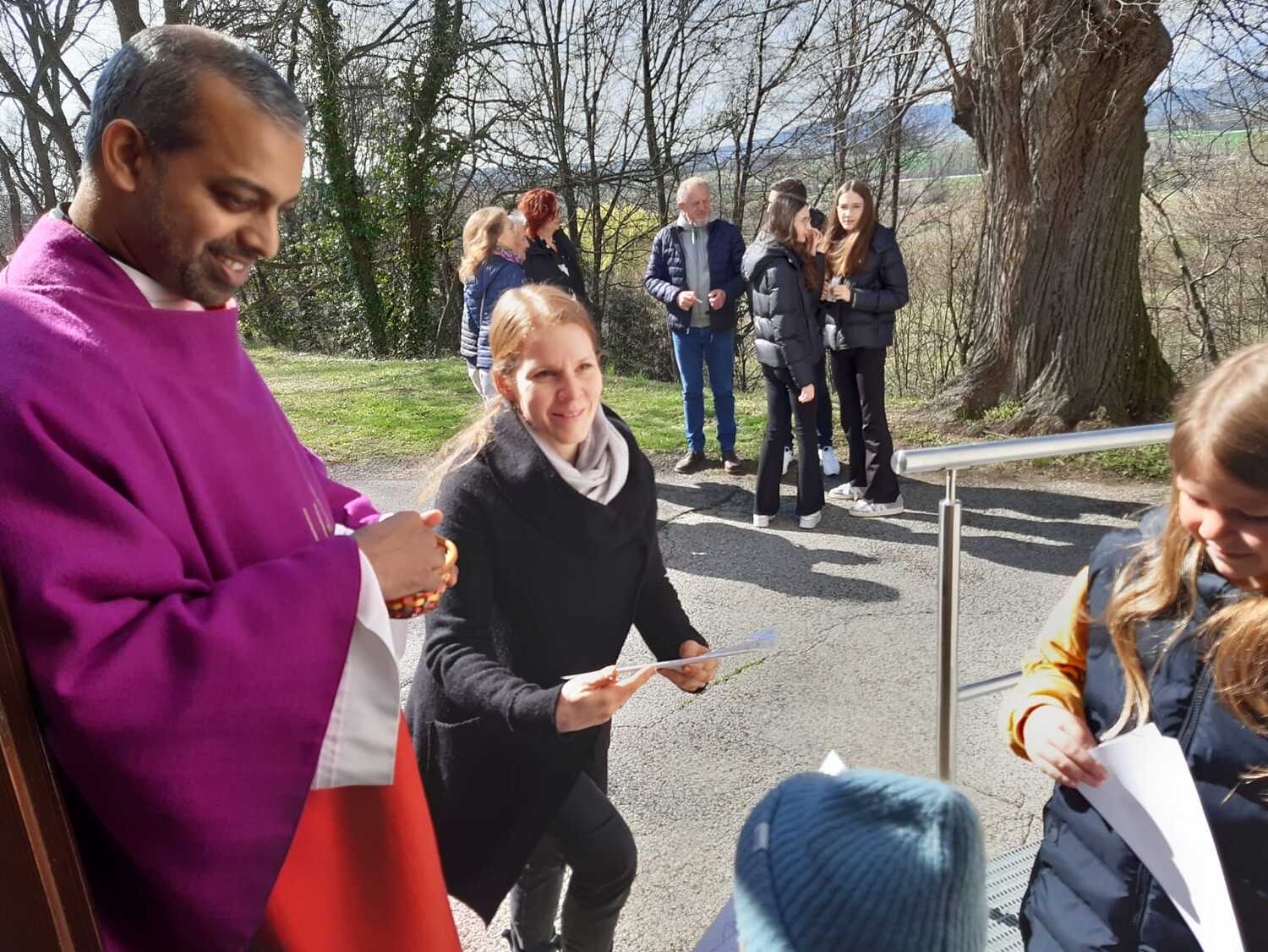 Zur Bibelstelle „Wenn das Weizenkorn in die Erde fällt und stirbt, bringt es reiche Frucht “ hatte Jungscharleiterin Katja am 5. Fastensonntag mit den Kindern einen wunderbaren Familien-Gottesdienst vorbereitet. Nach der Predigt, in der auch Pfarrer Shinto das Thema auslegte, brachten die Kinder Weizenkörner zum Altar und setzten diese dort in eine vorbereitete Schale mit gefüllter Erde – als Zeichen, dass auch unser Leben nicht fruchtlos bleibt. Anschließend sangen die Kinder das Lied „Gottes Liebe ist so wunderbar“. Am Ende des Gottesdienstes wurde an alle Gottesdienstbesucher ein kleines Säckchen mit Weizenkörnern verteilt.