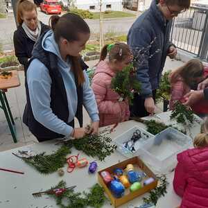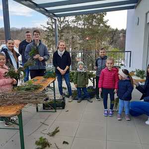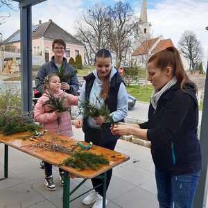 Schon Tage vor dem Palmsonntag bereiteten sich die Kinder auf diesen Tag vor und banden unter der Leitung von Jungscharleiterin Katja wunderschöne Palmbuschen für den Einzug in die Kirche Weppersdorf.