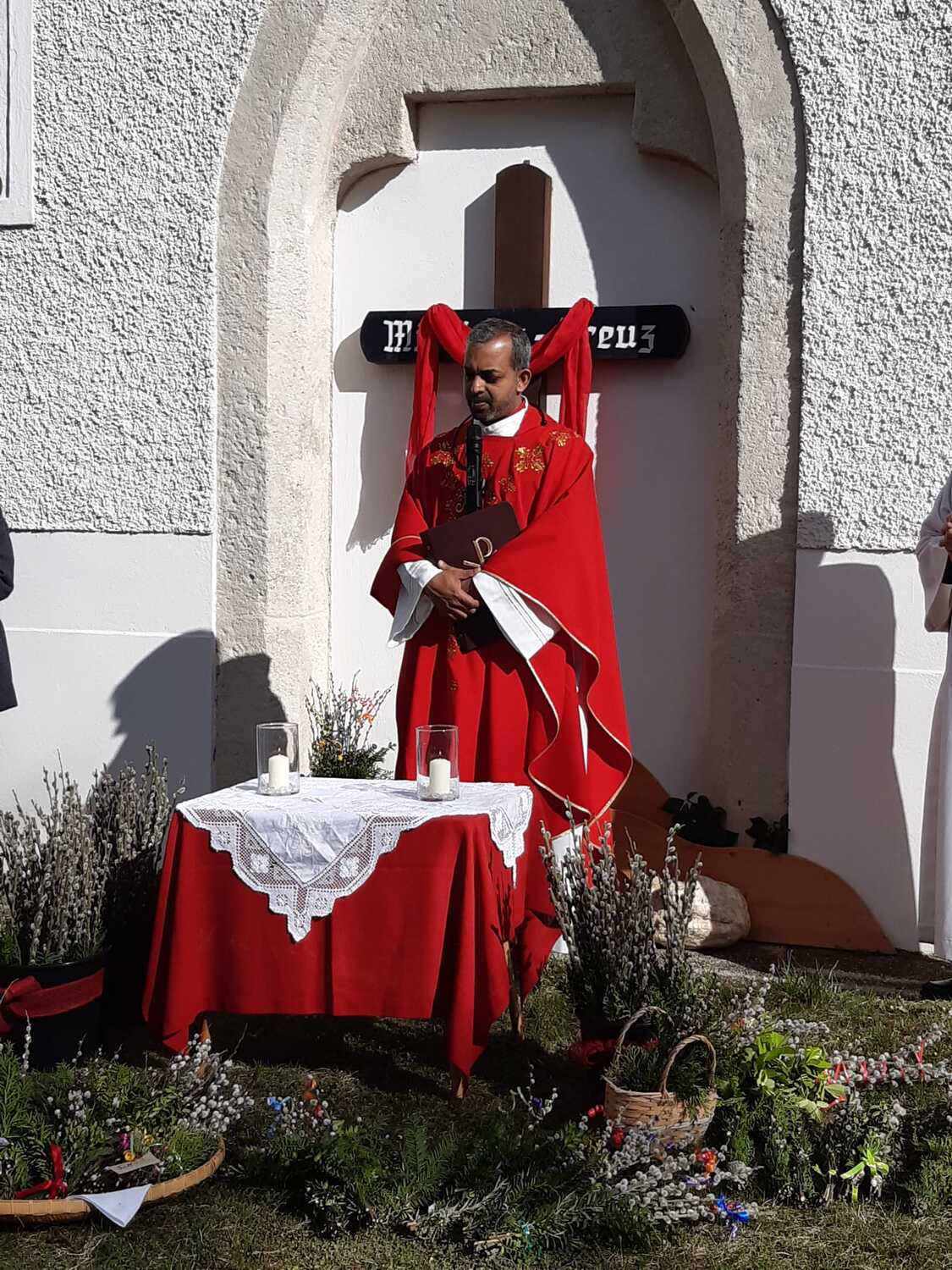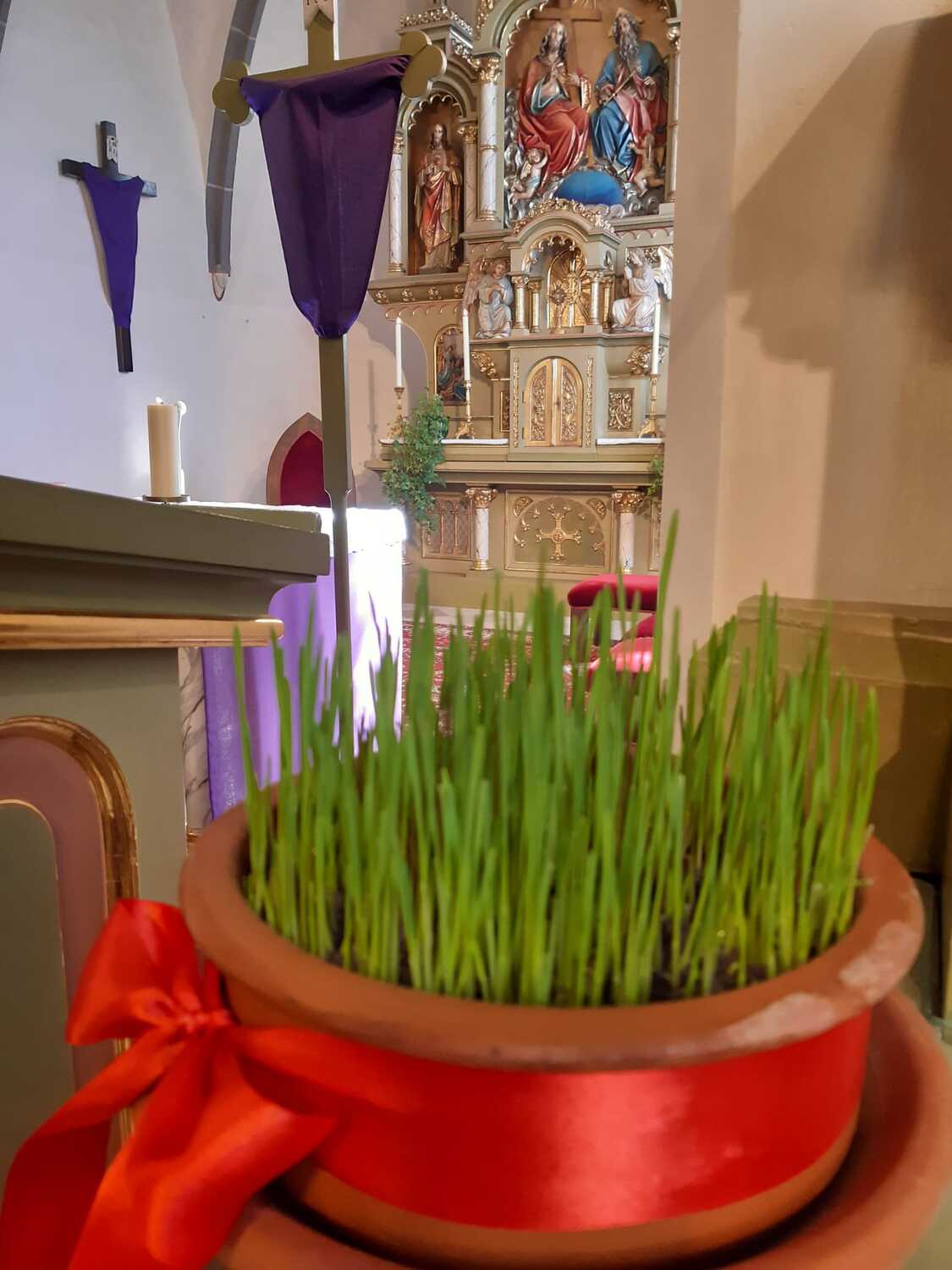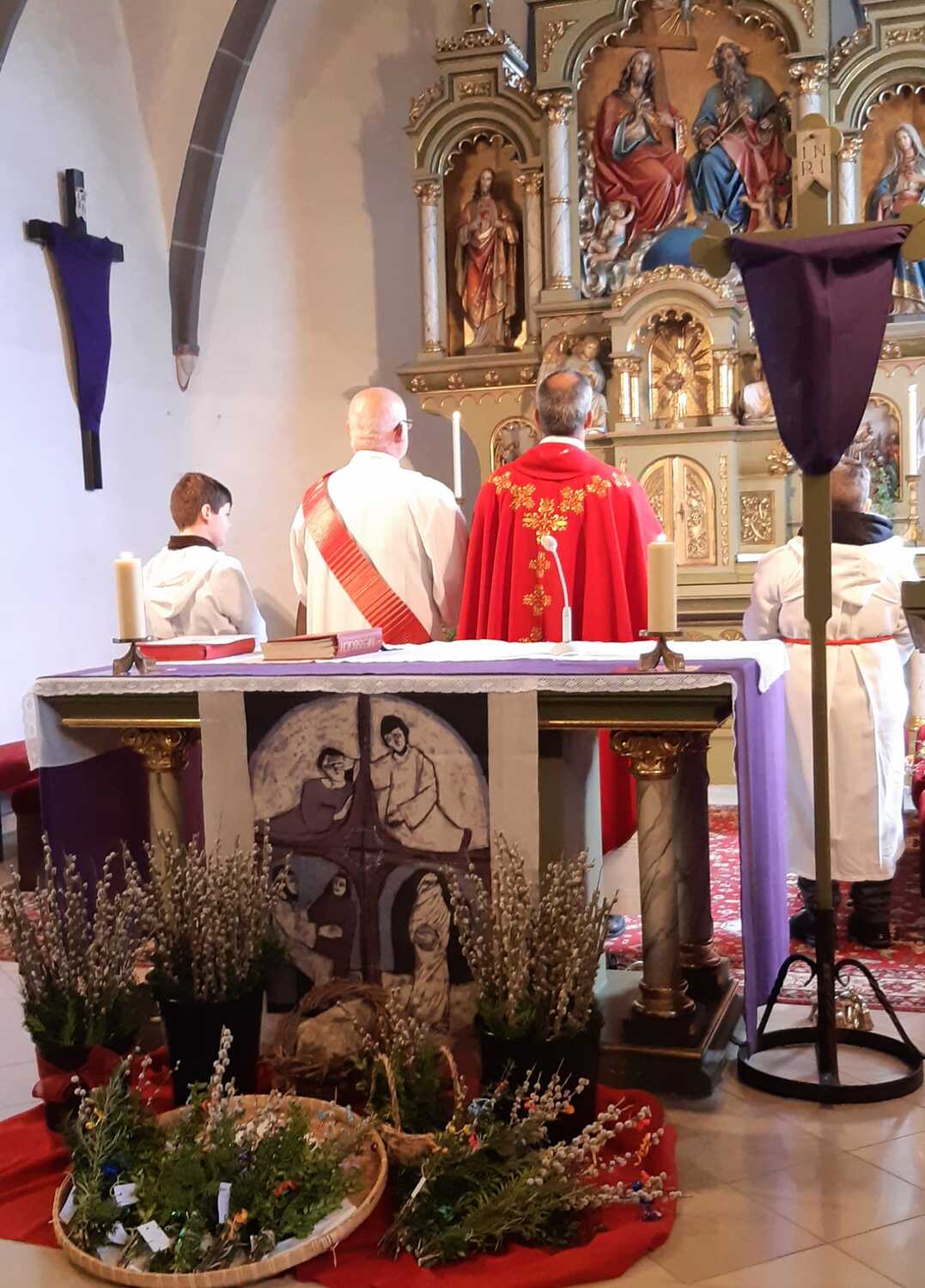Zur Feier der Liturgie zum Palmsonntag mit Segnung der Palmbuschen trafen sich die Gläubigen der Pfarre Weppersdorf vor der Kirche und zogen in einer kurzen Prozession gemeinsam in die Kirche ein, wo dann ein wunderschön gestalteter Gottesdienst gefeiert wurde.