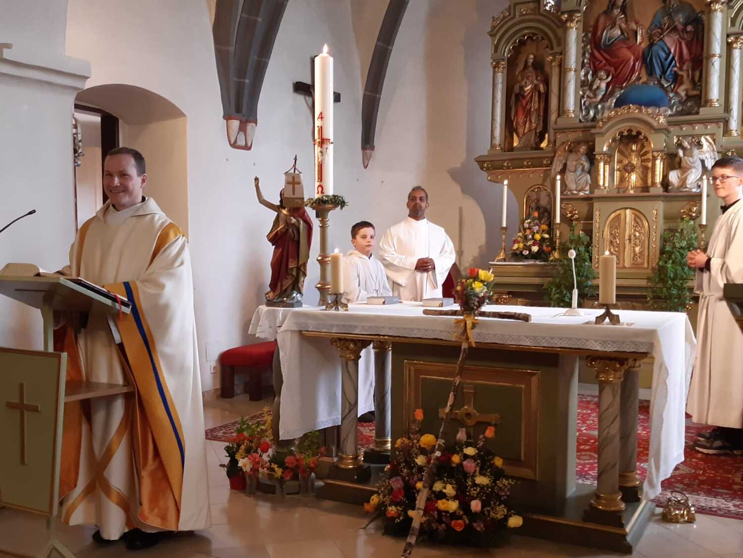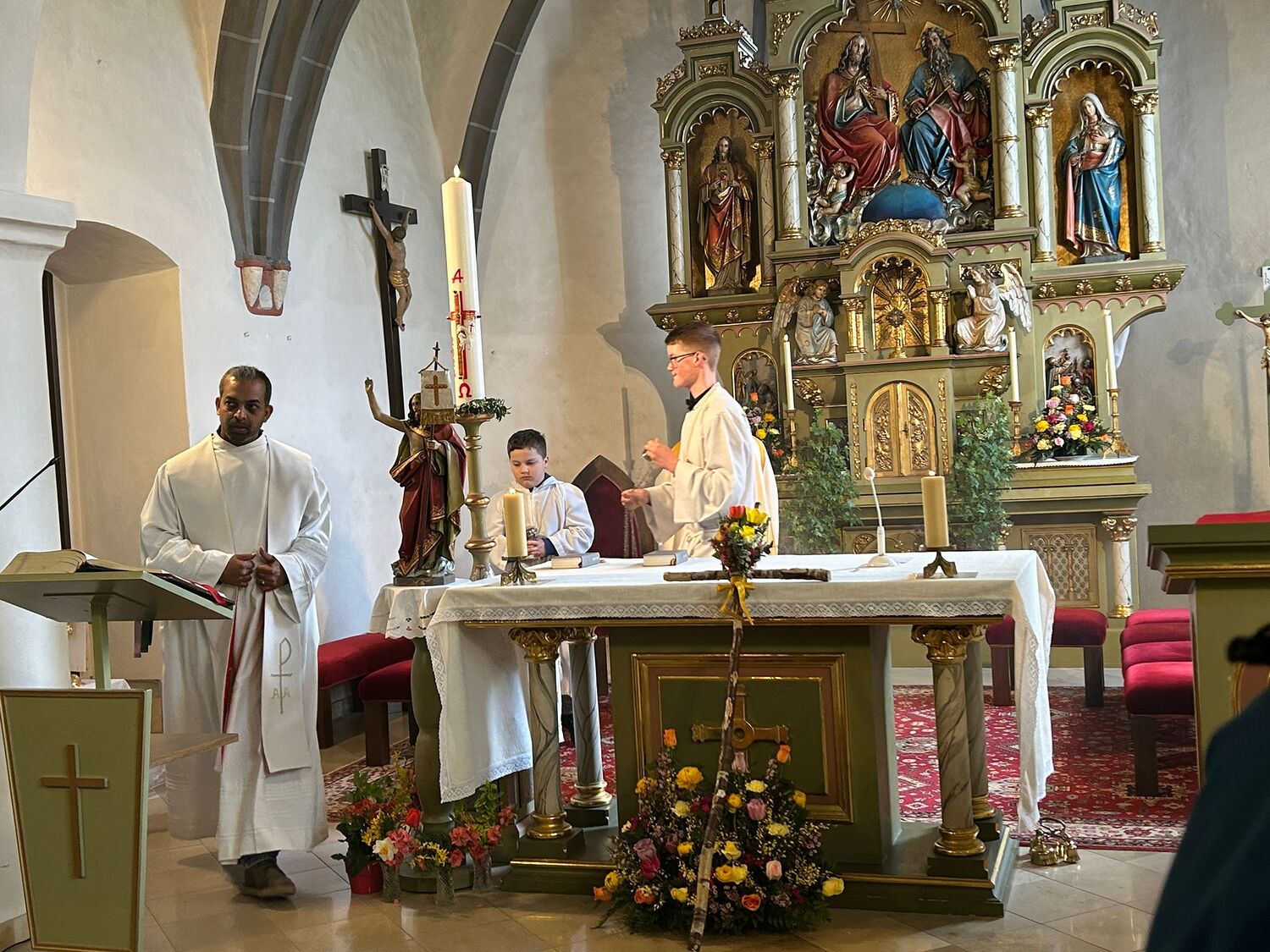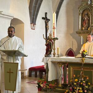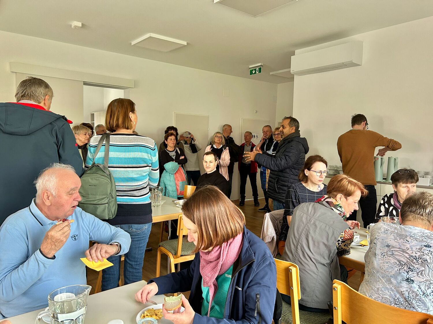 Die spirituelle Wanderung endete erstmal im Pfarrheim Weppersdorf, wo wir mit einem großzügigen Frühstück versorgt wurden. Gestärkt zogen wir alle gemeinsam in die Pfarrkirche Weppersdorf ein, wo Gastpfarrer David Gold und Pfarrer Shinto einen wunderschönen Gottesdienst mit uns feierten.