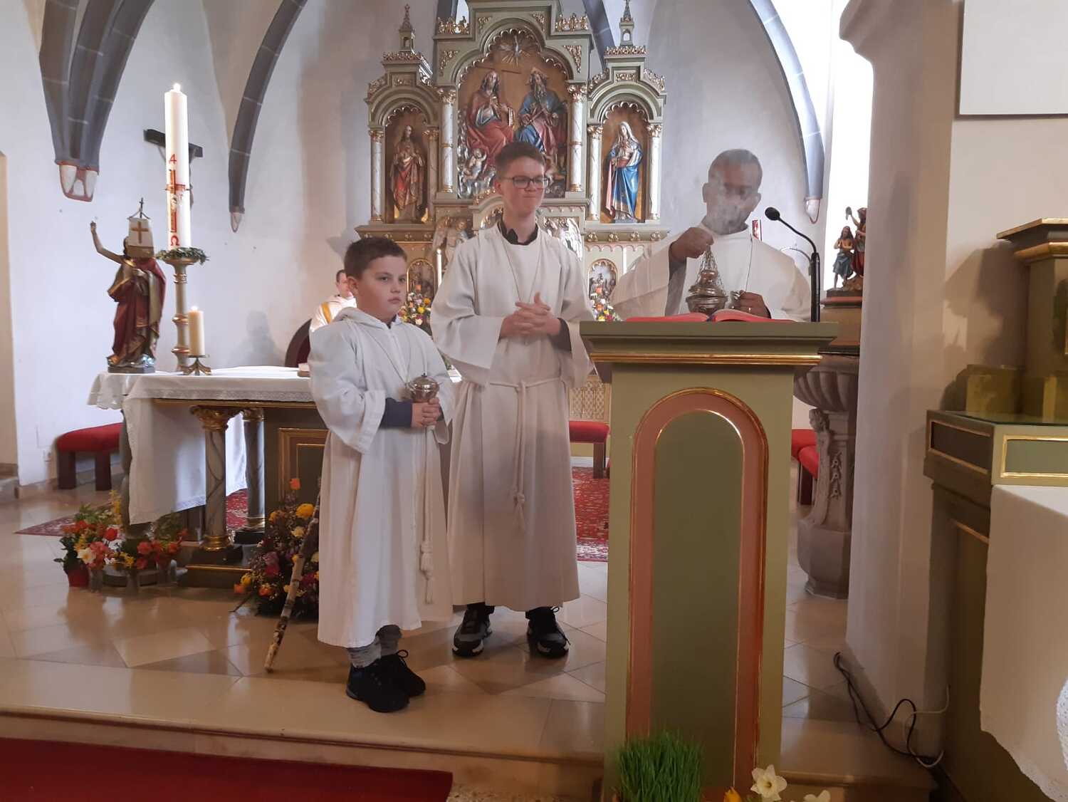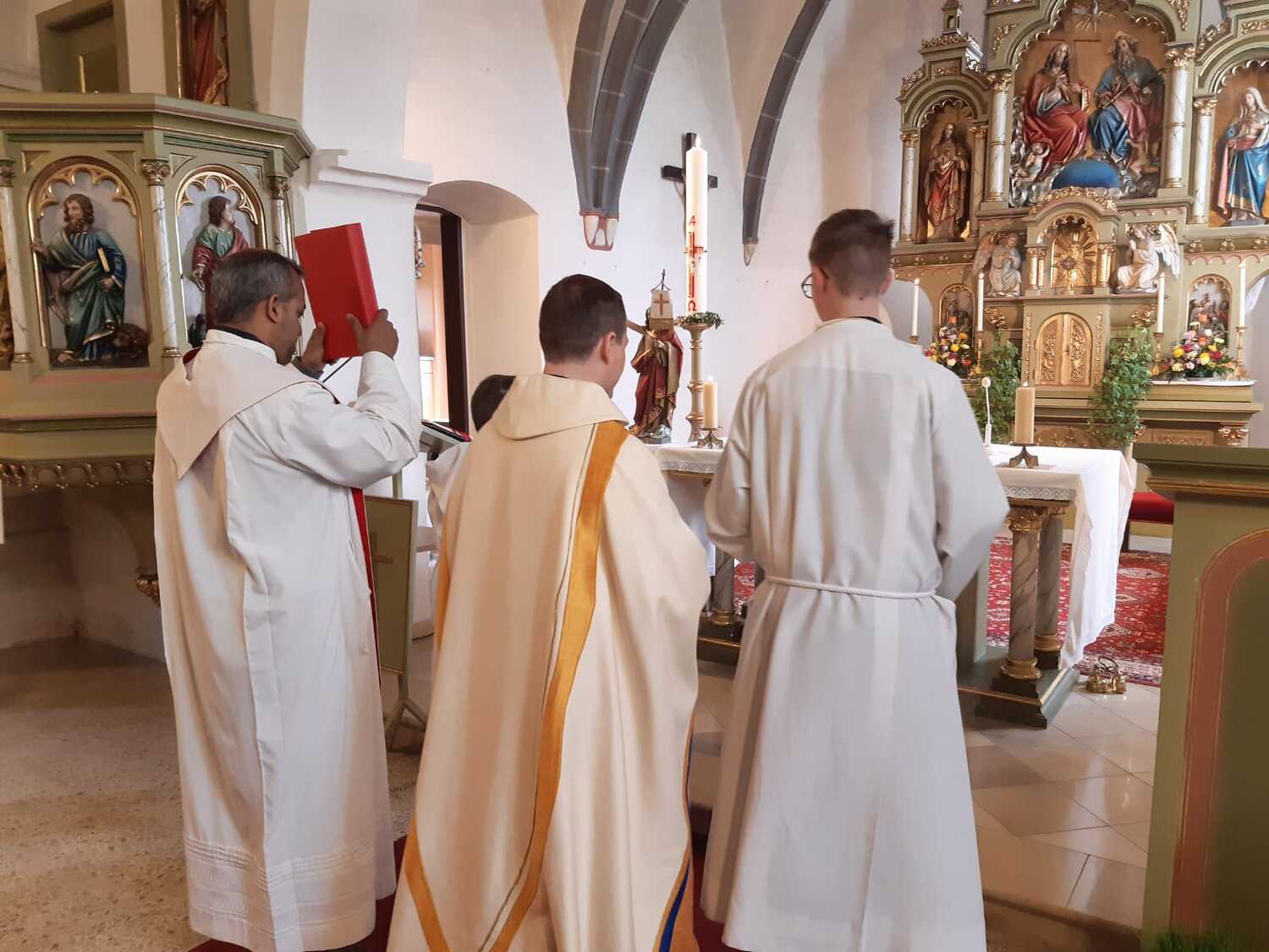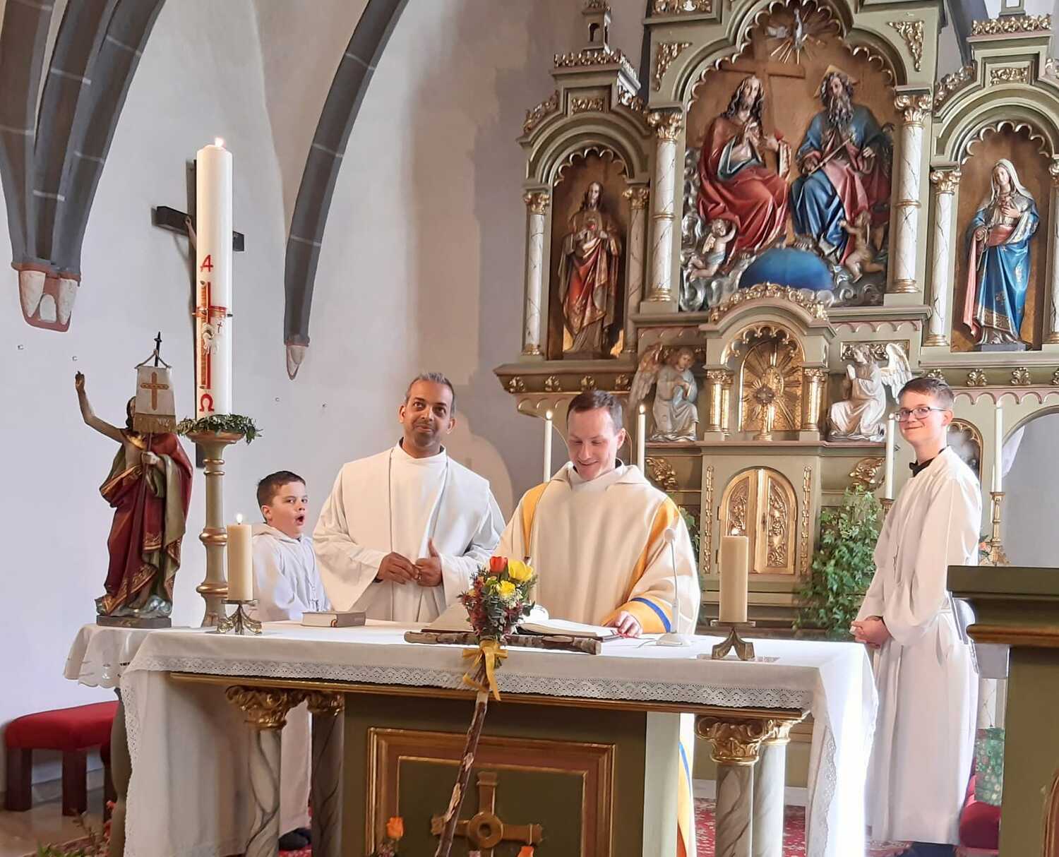 Die spirituelle Wanderung endete erstmal im Pfarrheim Weppersdorf, wo wir mit einem großzügigen Frühstück versorgt wurden. Gestärkt zogen wir alle gemeinsam in die Pfarrkirche Weppersdorf ein, wo Gastpfarrer David Gold und Pfarrer Shinto einen wunderschönen Gottesdienst mit uns feierten.
