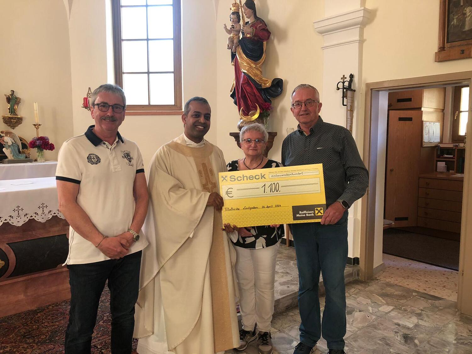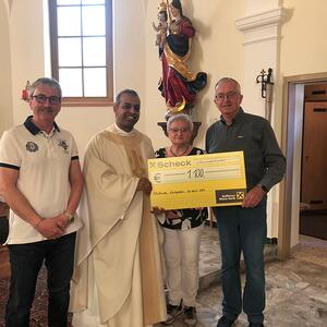 Der Reinerlös der Veranstaltung von € 1,100,- wurde am Samstag im Rahmen der Florianimesse an Pfarrer Shinto übergeben und wird für Projekte mit Kindern in der Heimat unseres Pfarrers verwendet.