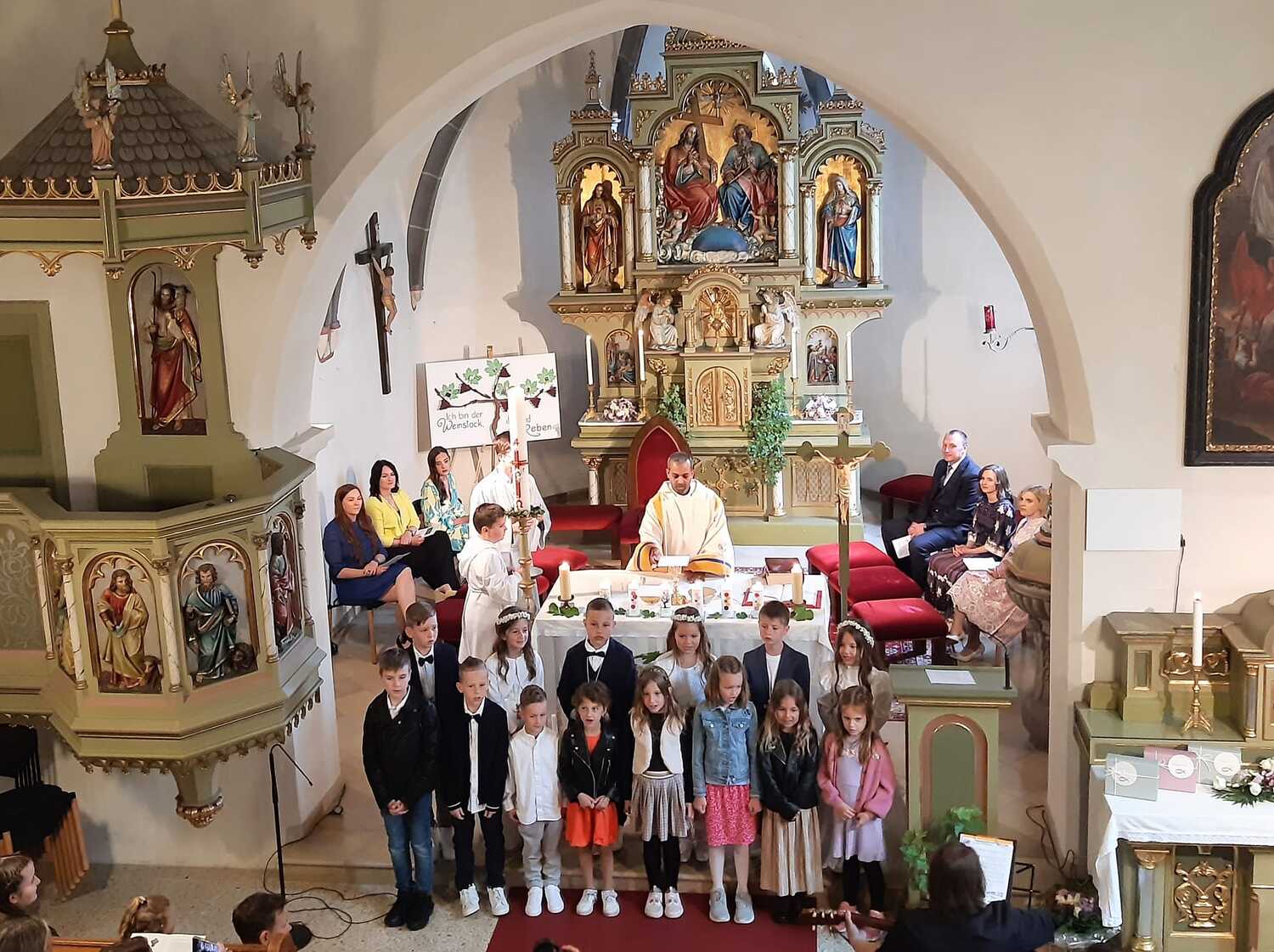 Mit dem Bibelzitat „Ich bin der Weinstock, ihr seid die Reben“ haben sich die Kinder schon sehr lange auf dieses besondere Ereignis vorbereitet.
