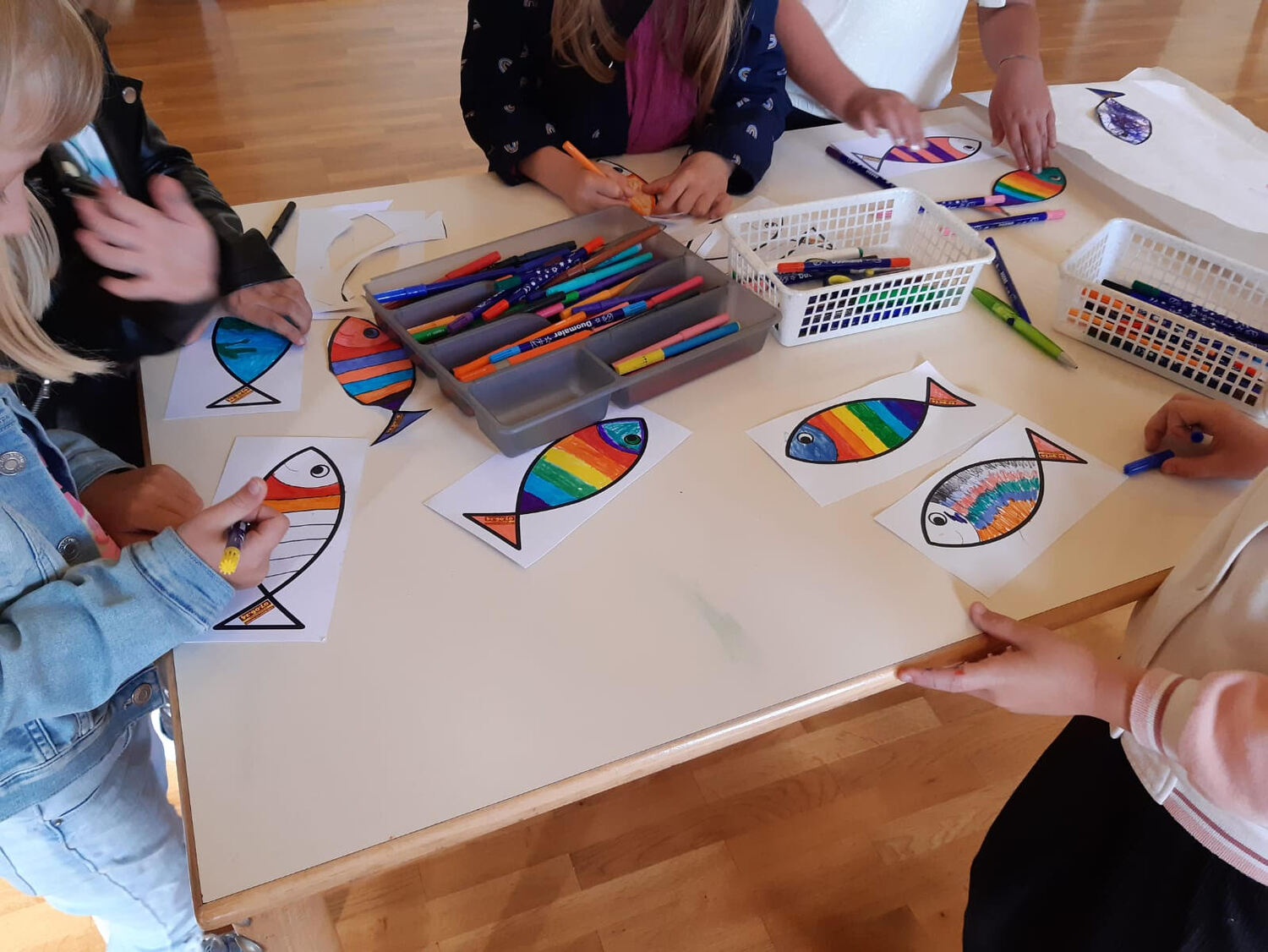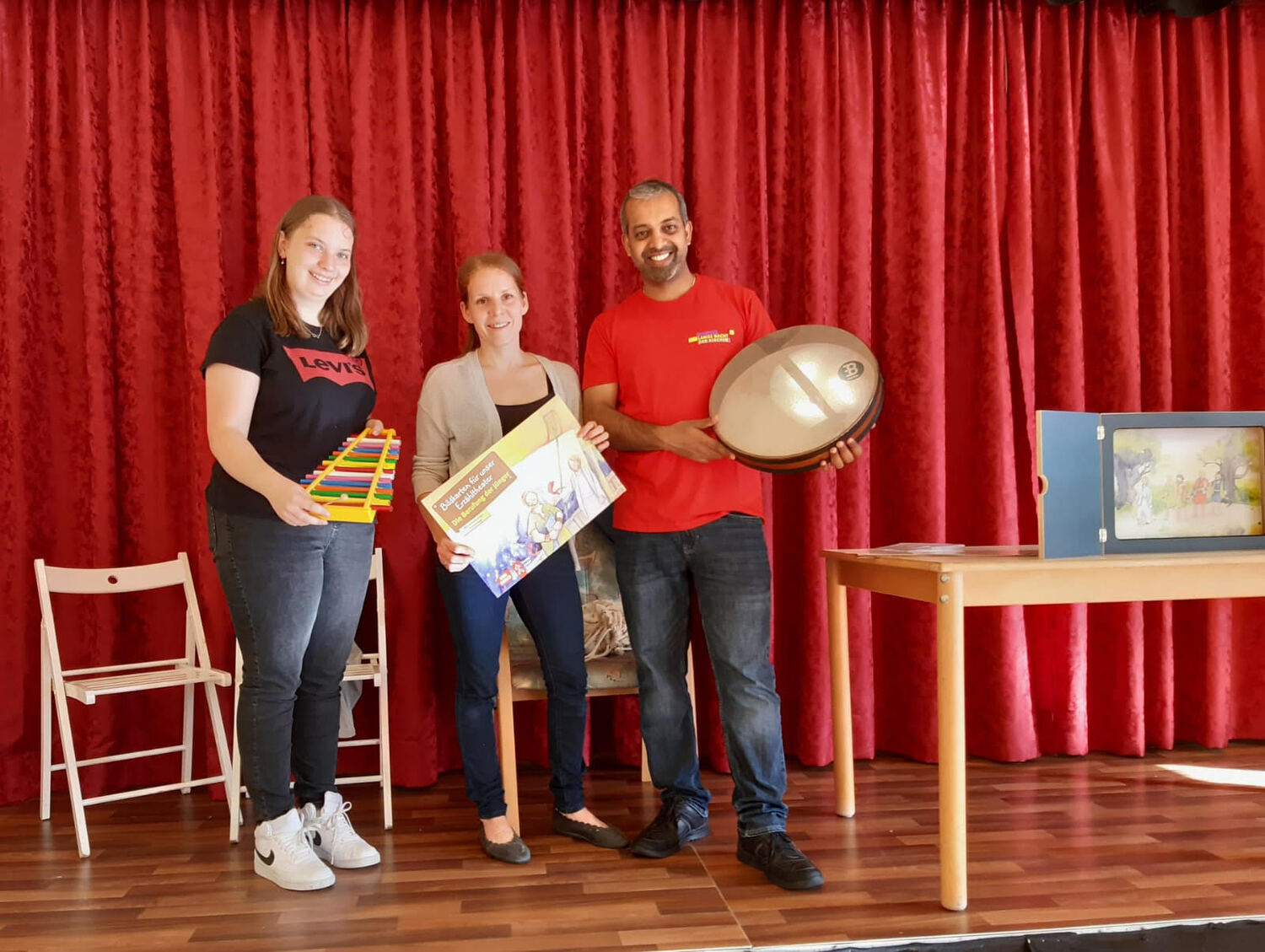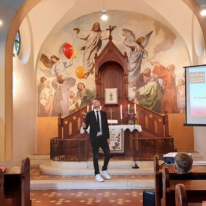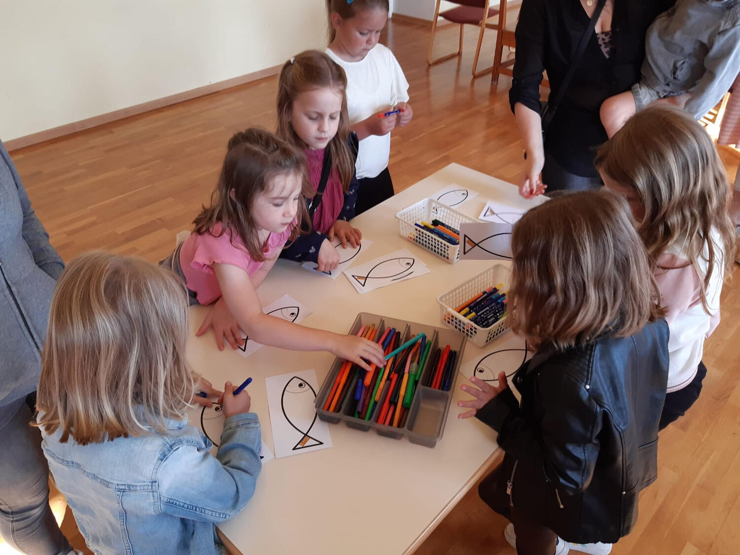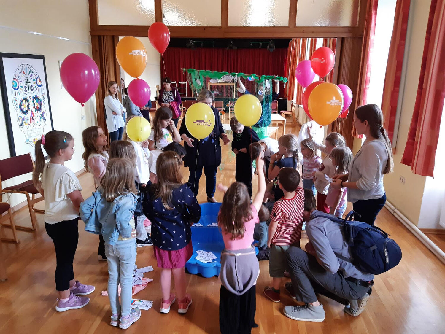 Danach zogen die Kinder in die alte Schule, wo ein abwechslungsreiches Kinderprogramm von Katja Schützenhofer und ihrem Team vorbereitet war. Während die Kinder dem Erzähltheater zum Thema „Ich mache euch zu Menschenfischern“ lauschten und danach bei einer Kreativstation Fische basteln konnten, führte David Piniel die Erwachsenen durch die Kirchen- und Glockengeschichte der Bekenntniskirche Weppersdorf. Zwischen den einzelnen Vortragsblöcken wurde gemeinsam gesungen und wer wollte, konnte die VaterUnser-Glocke besichtigen. Außerdem bestand die Möglichkeit einen Film zur Geschichte der Bekenntniskirche von Weppersdorf zu schauen.