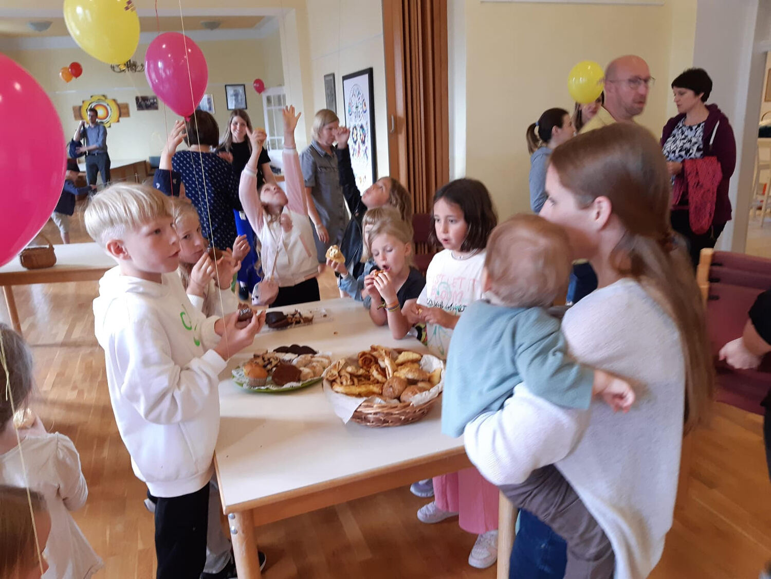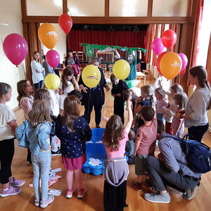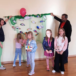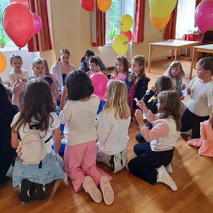 Aufgrund des unbeständigen Wetters an diesem Tag musste das geplante Programm kurzerhand etwas abgeändert werden. Der gemeinsame Marsch zur Segensstation bei der Sonnenuhr am Radweg entfiel und wurde in die alte Schule verlegt. Dort konnten die Kinder Segenswünsche fischen und gemeinsam jausnen. Für die Erwachsenen waren ebenfalls Segenswünsche in Form von Kärtchen oder auch digital vorbereitet.