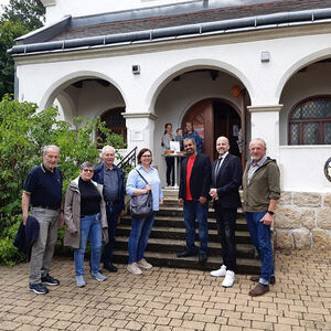 Der nächste Programmpunkt führte in die katholische Kirche. Unter der Leitung von Barbara Magyar Grabner sangen evangelische und katholische Frauen und Männer unter dem Motto „Bleibe bei uns Herr“ gemeinsam verschiedene Segenslieder für die zahlreichen Gäste. Zwischen den Liedern wurden stimmungsvolle Gedanken und Gebete vorgetragen. Außerdem erzählten Josef Bertha und Pfarrer Shinto aus der Geschichte der Dreifaltigkeitskirche.