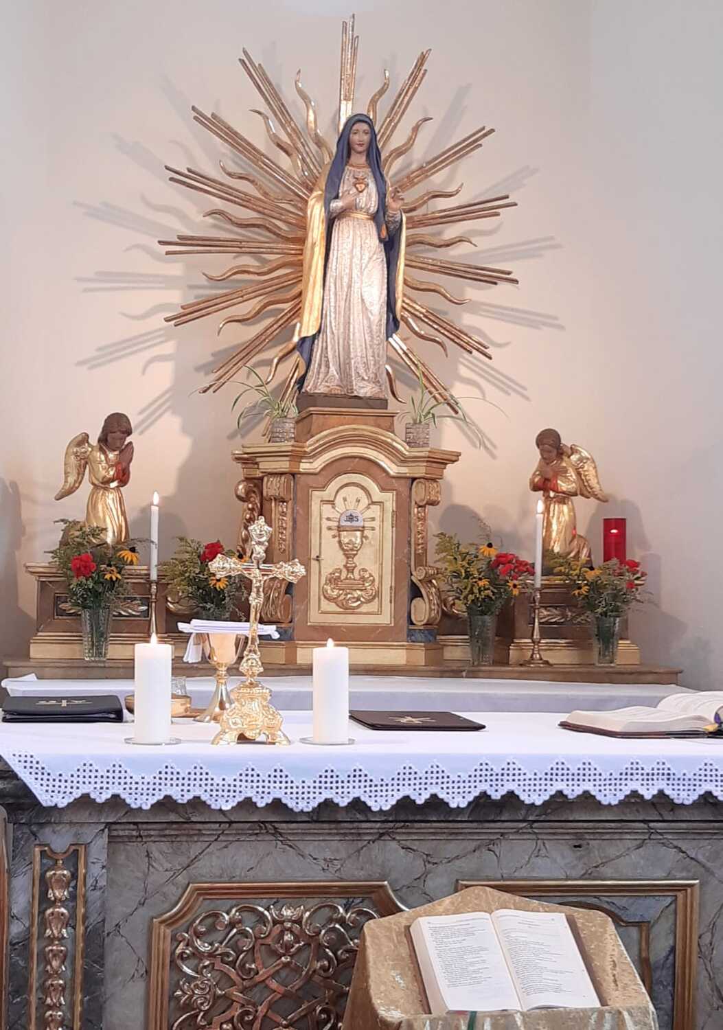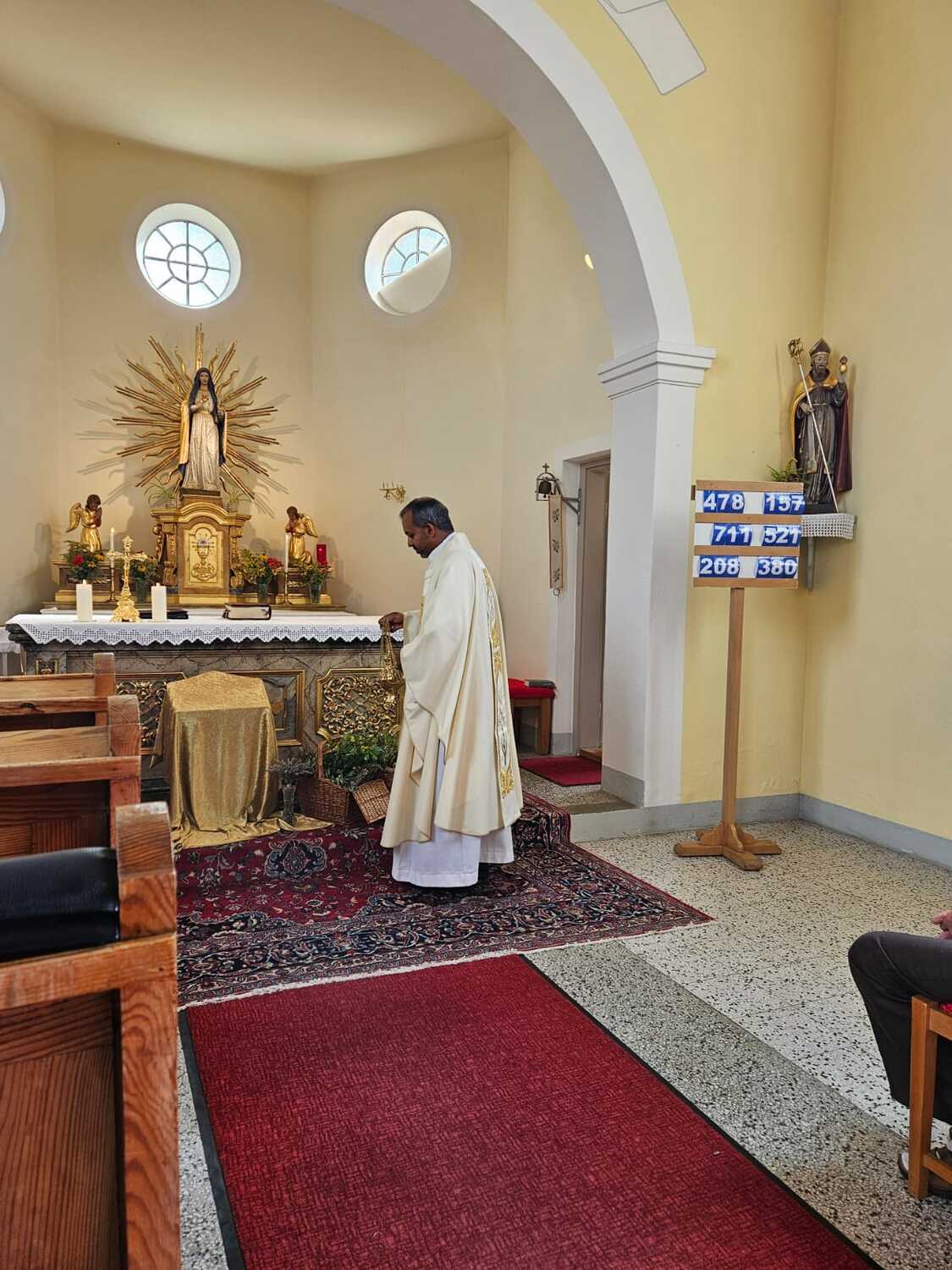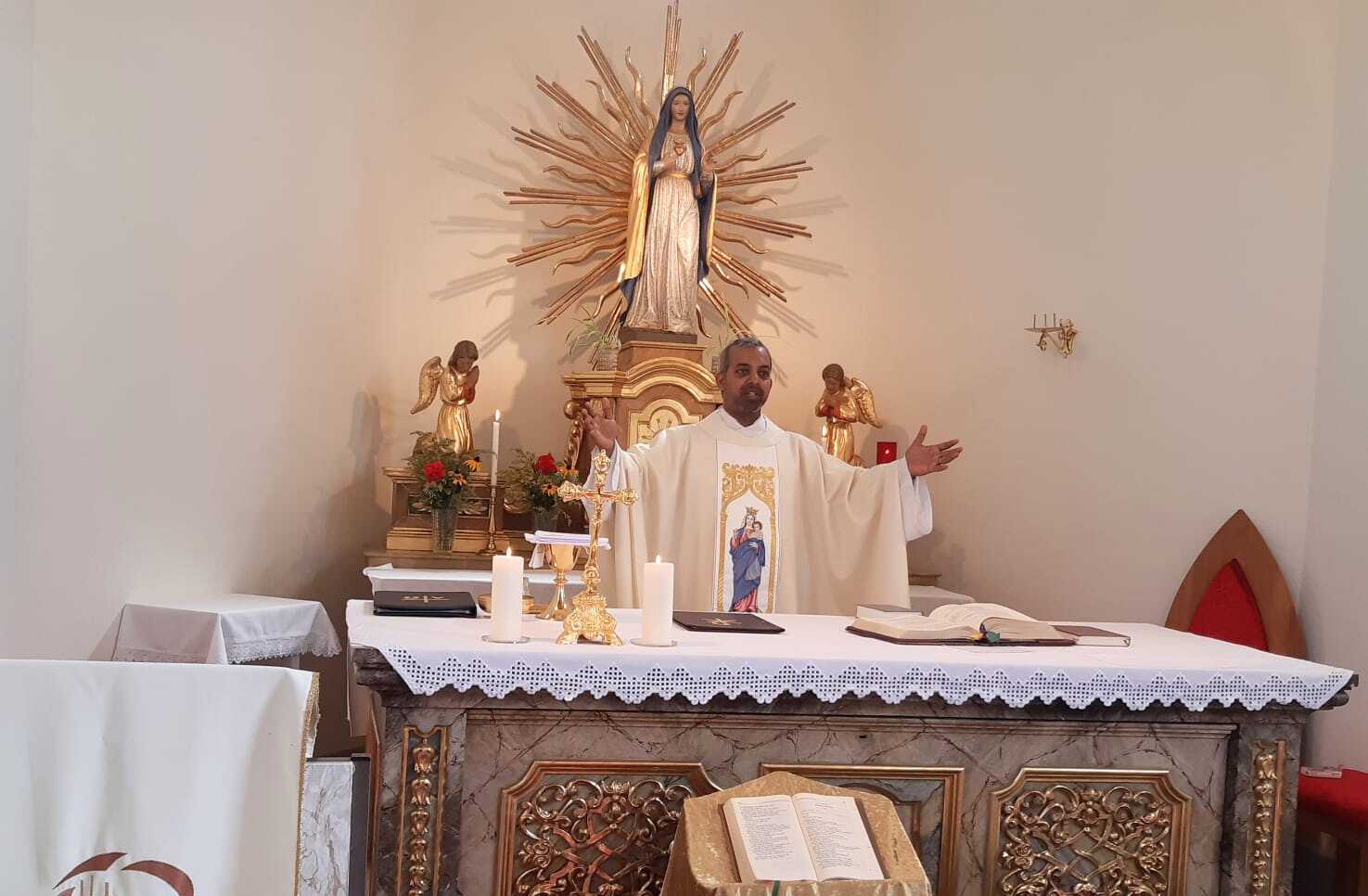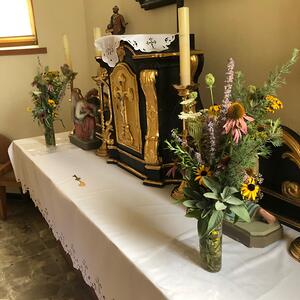 Auch in den Filialen Lindgraben und Tschurndorf wurden mit viel Eifer Kräuter gesammelt und von den Frauen zu wunderschönen Sträußen gebunden. Pfarrer Shinto segnete diese im Rahmen des Patroziniumsfestes in Tschurndorf und nach der Vorabendmesse in Lindgraben. Am Ende der Heiligen Messen wurden diese an die Gottesdienstbesucher verteilt und durften mit nach Hause genommen werden.