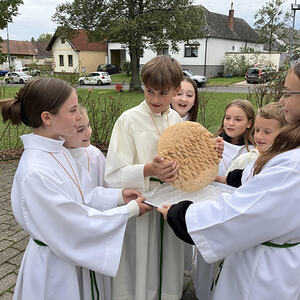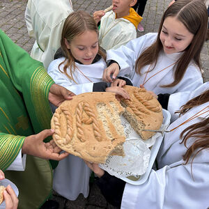 Im Anschluß wurde in Lindgraben das für das Fest extra gebackene Brot geteilt und verkostet.