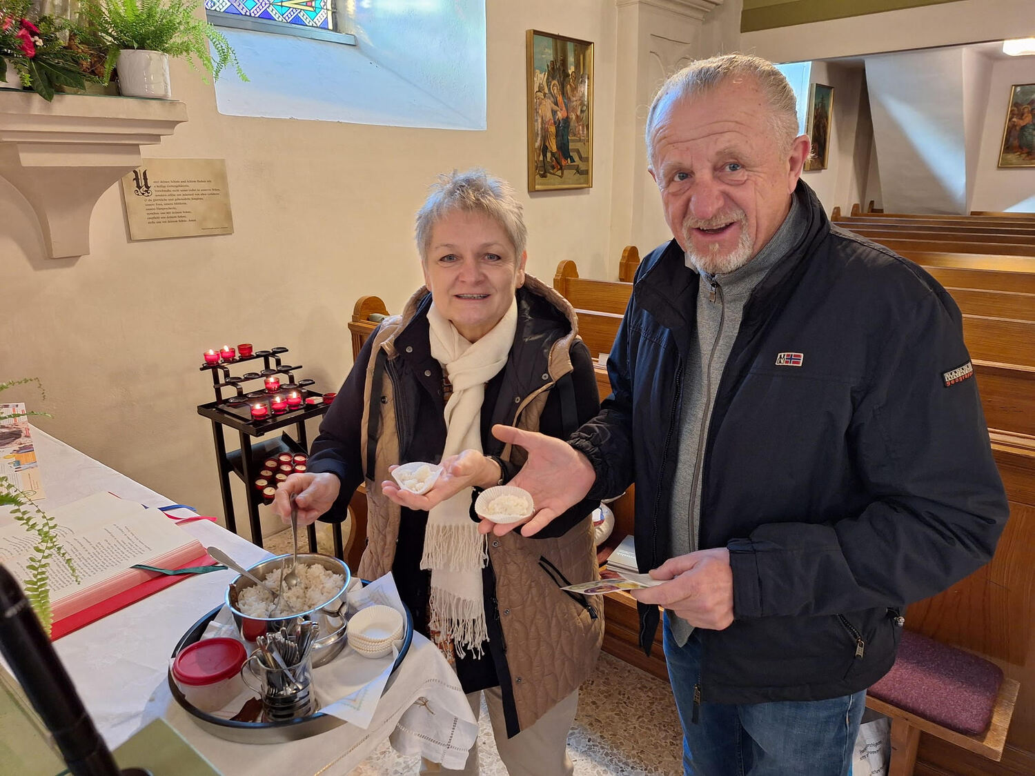Am Ende der Heiligen Messe verteilte unser Herr Pfarrer und die Minis Säckchen mit Reis - mit der Botschaft: „Eine Handvoll Reis schützt vor Hunger!“