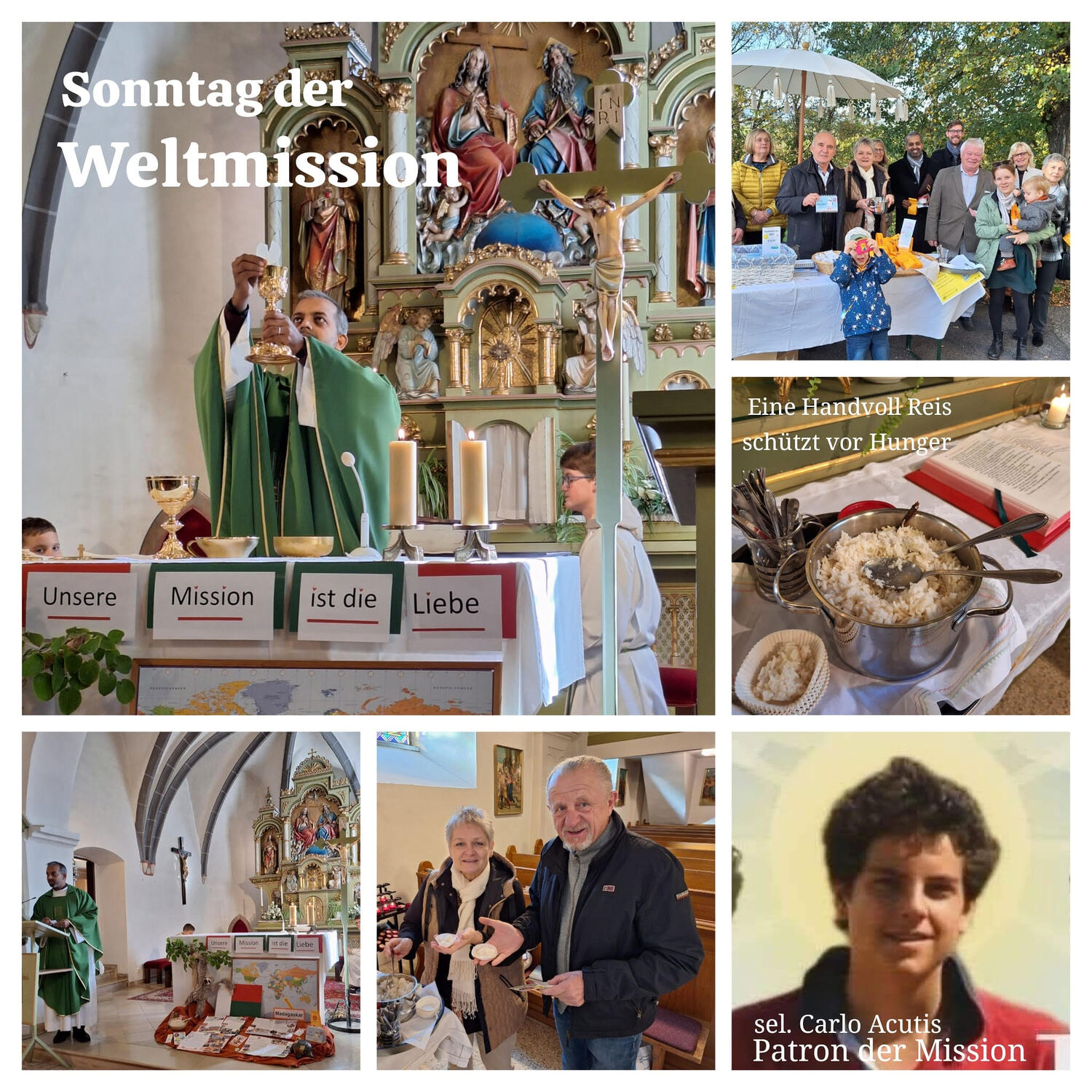 Unser Herr Pfarrer Shinto ging bereits am Beginn der Hl. Messe auf die starke, auffordernde Botschaft von Papst Franziskus ein. In seiner Predigt brachte er uns den Patron der Mission, den bald heiliggesprochenen, jungen Carlo Acutis nahe. Wir hörten von den Lebensstationen seines kurzen Lebens, das durchdrungen war von der Liebe zur Eucharistie und den Taten seiner gelebten Nächstenliebe. Pfarrer Shinto betonte die wertvolle Herzensgabe von uns, die Kollekte, die Missionsprojekte möglich machen.