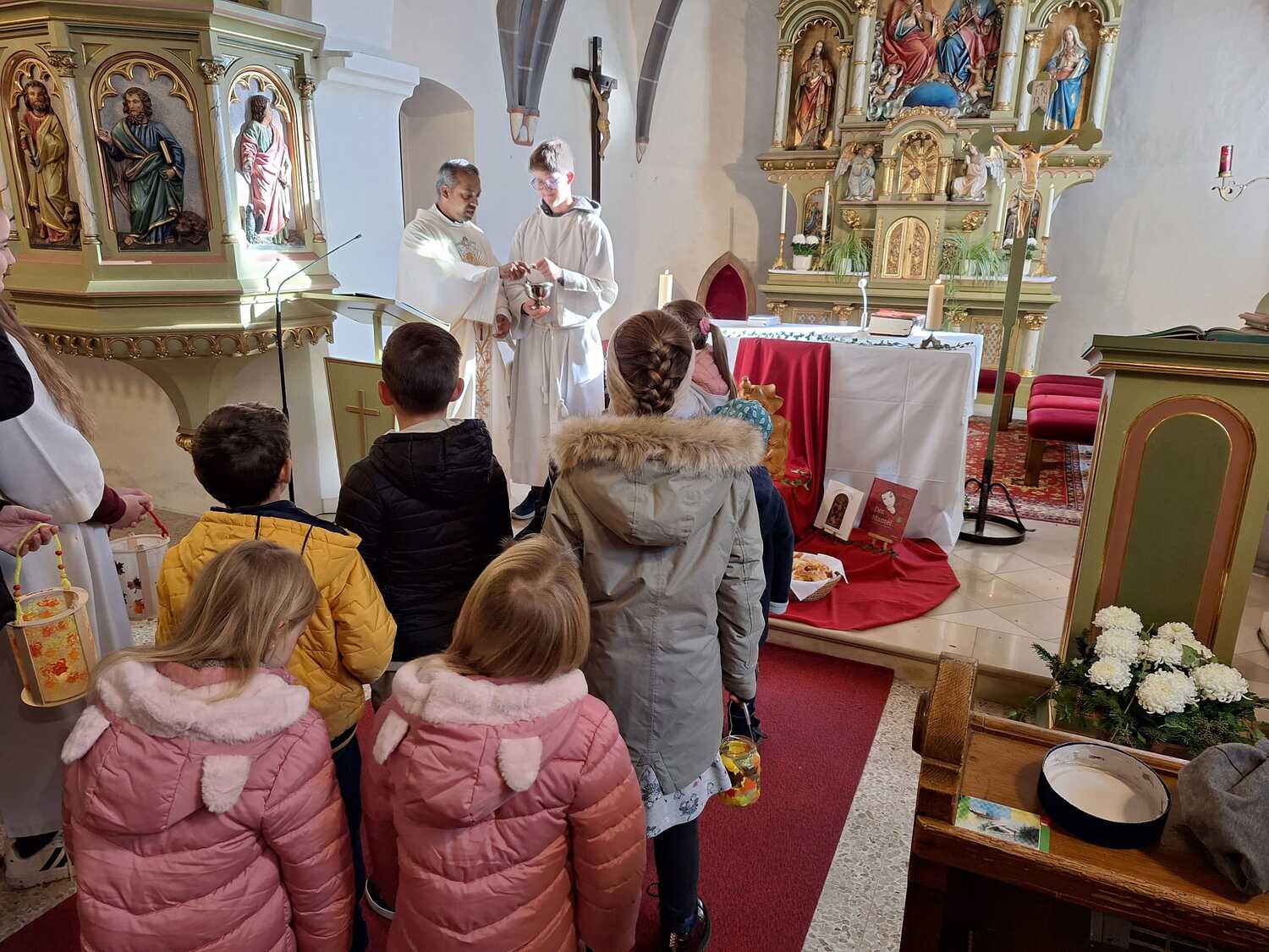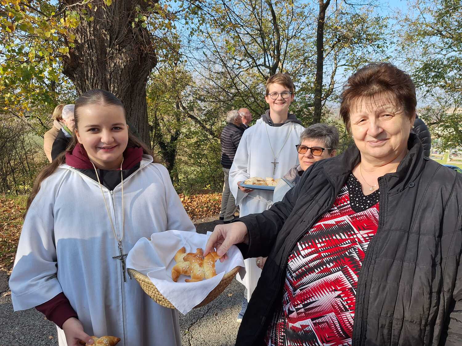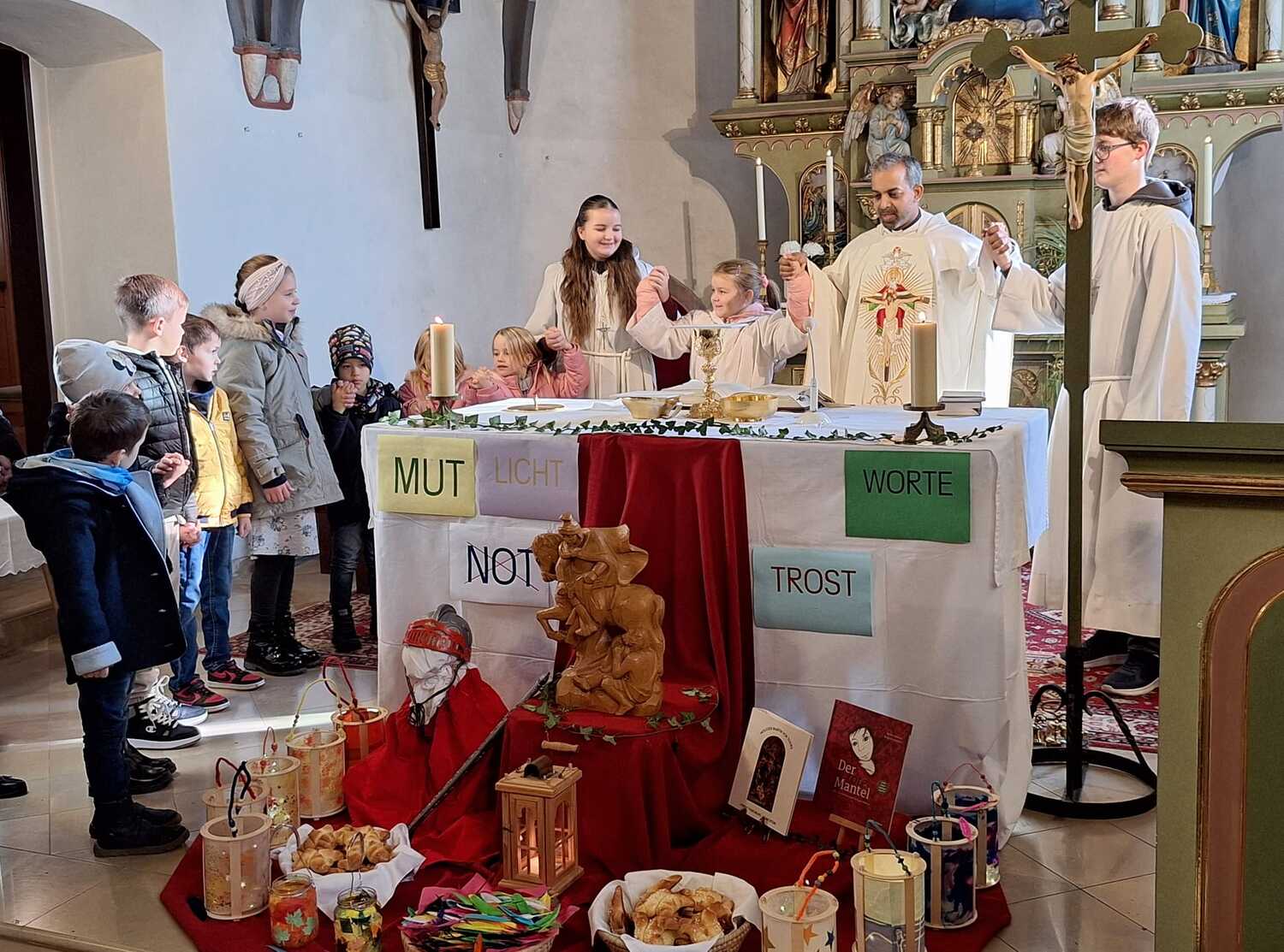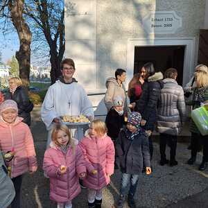 Am Ende des Gottesdienstes schlüpften die Kinder in die Rolle des hl. Martin und verteilten voller Freude die von tüchtigen Damen gebackenen Martins-Kipferl.
