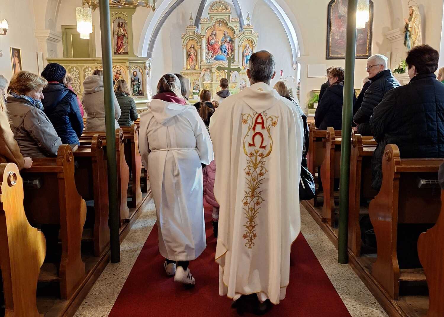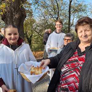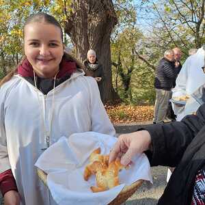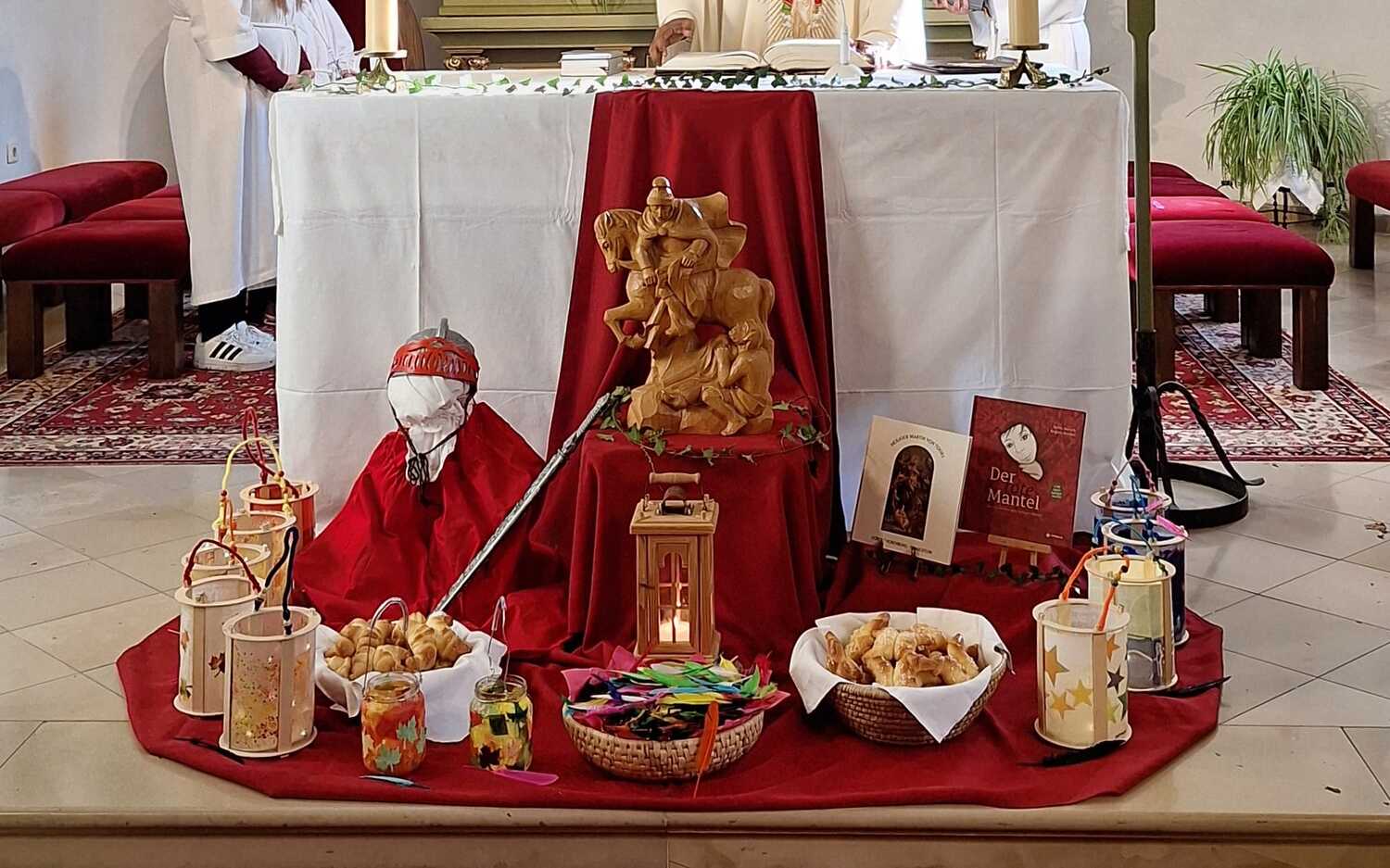 Am Ende des Gottesdienstes schlüpften die Kinder in die Rolle des hl. Martin und verteilten voller Freude die von tüchtigen Damen gebackenen Martins-Kipferl.