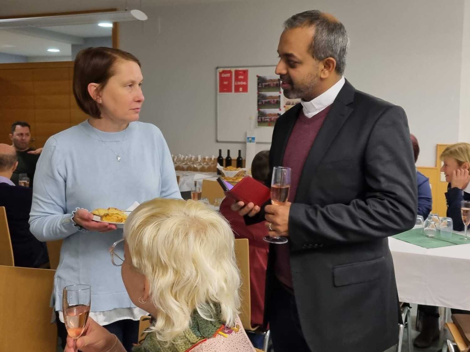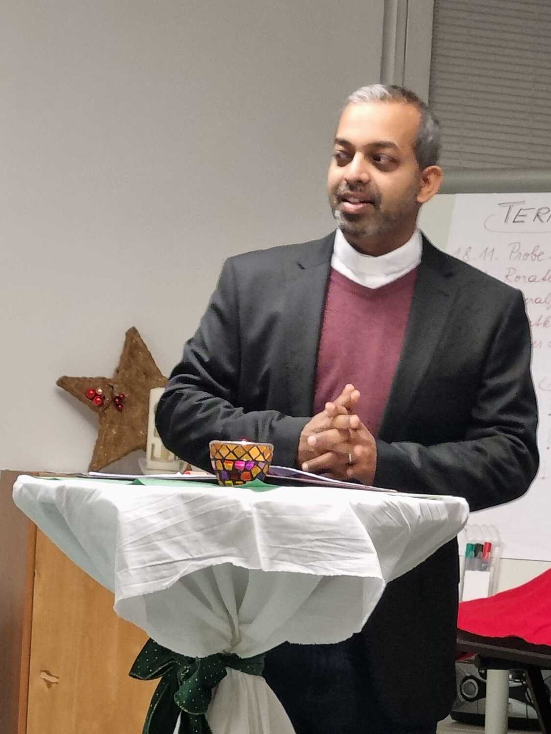 Pfarrer Shinto begrüßte die gekommenen Gäste und bedankte sich nach einem kleinen Rückblick für die aktive und vielfältige Mitarbeit sowie für die spürbare Gemeinschaft, die er täglich erleben darf. „Jeder und jedem für die Dienste zu danken, das würde den Nachmittag schnell zum Abend werden lassen“ so Pfarrer Shinto. Doch soll der gemeinsame Nachmittag beim Anstoßen auf das neue Jahr ein kleines Zeichen seiner Wertschätzung sein.