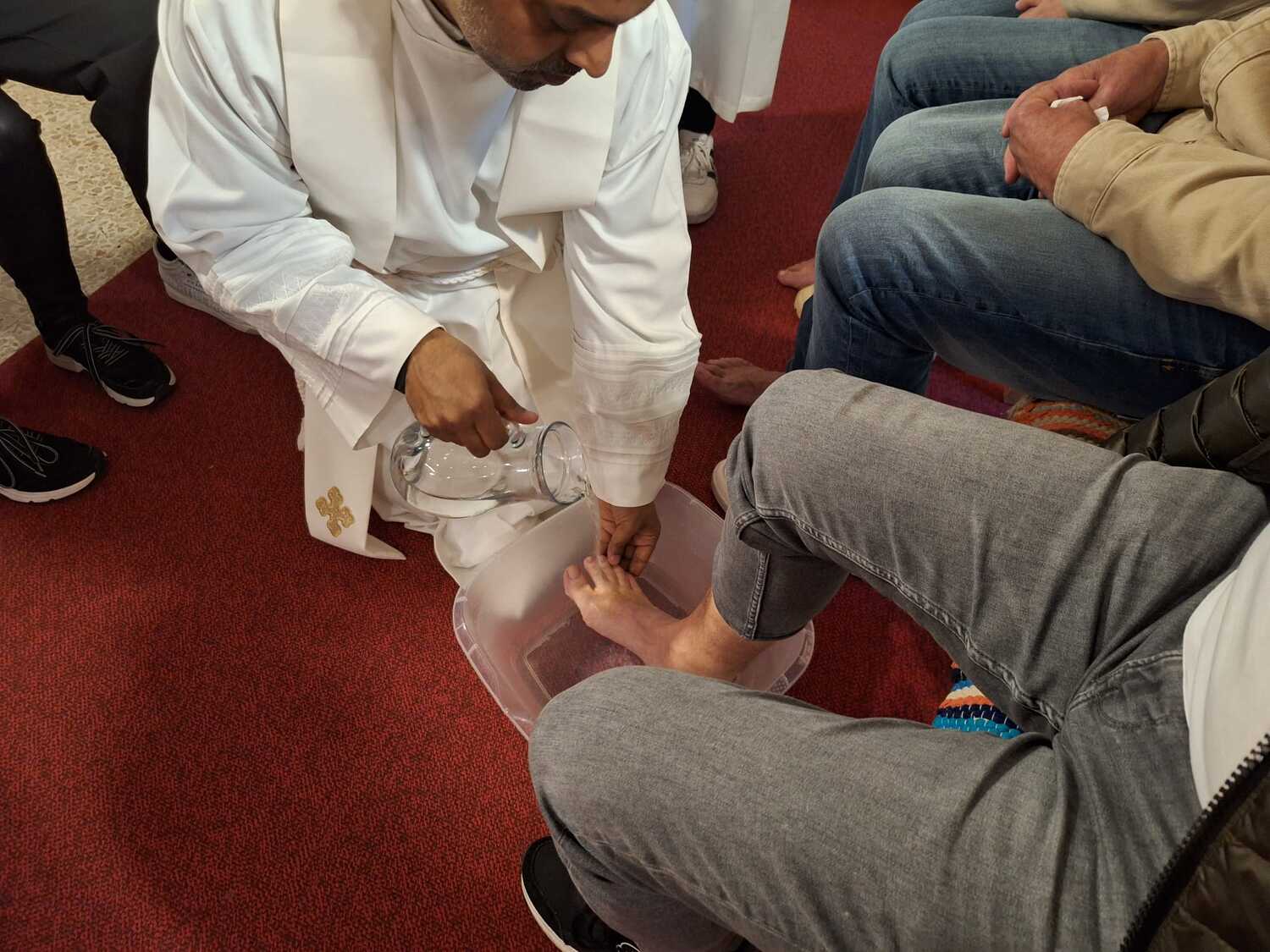 Am Gründonnerstag gedenken wir beim feierlichen Gottesdienst zum letzten Abendmahl der Einsetzung der Eucharistie. In der Fußwaschung zeigen wir die dienende Liebe, wie es uns Jesus vorgemacht hat.