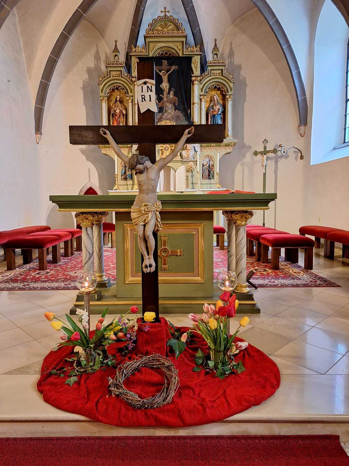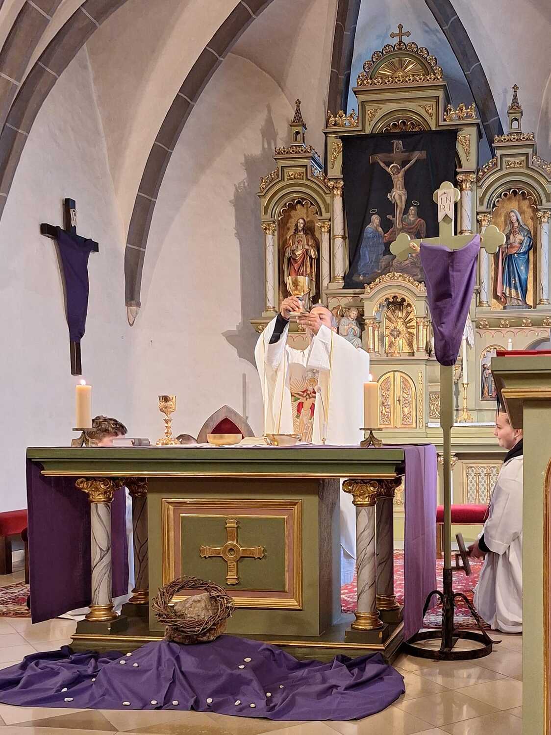 Am Karfreitag um 15 Uhr – der Todesstunde Jesu – wird in besonderer Form des Todes gedacht. Im Mittelpunkt steht die Kreuzverehrung sowie das Fürbittgebet für die Kirche und die ganze Welt.