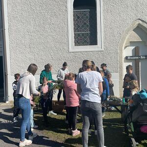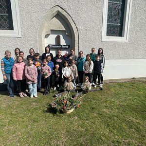 In der Woche vor Palmsonntag trafen sich die Kinder zum gemeinsamen Palmbuschenbinden. Diese werden am Palmsonntag gesegnet und sind ein Zeichen des Lebens und des Sieges über den Tod.