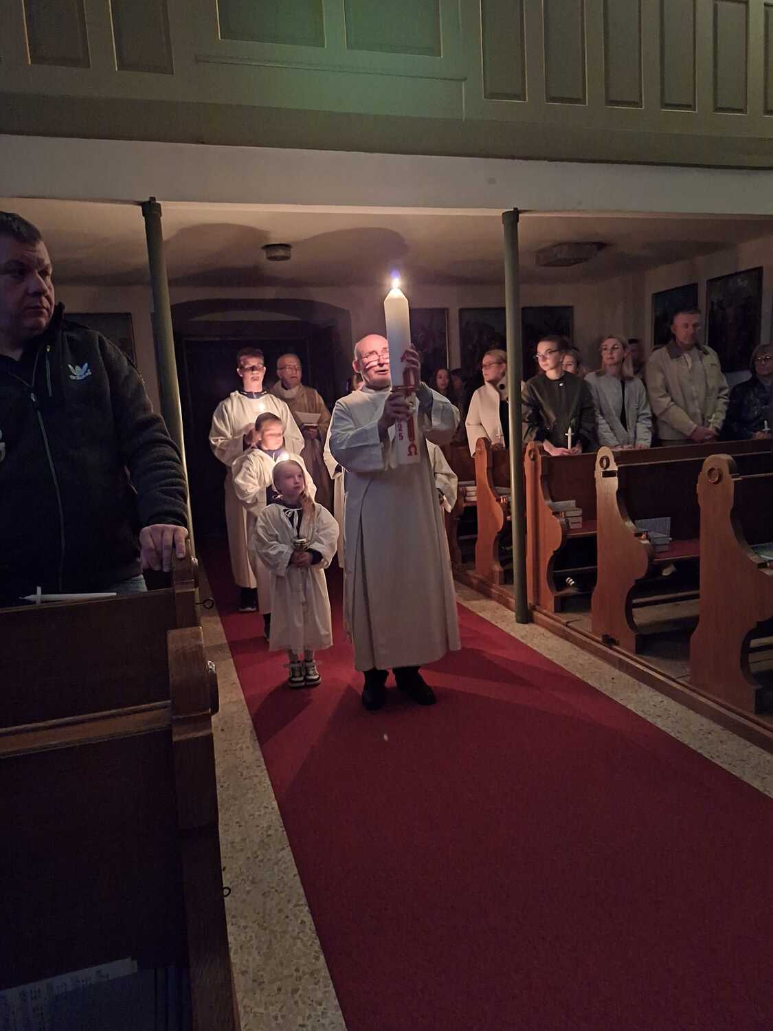 In der Osternacht bricht die Stille durch den erlösenden Ruf, dass Christus als das Licht der Welt immer gegenwärtig ist. Der Stein am Eingang des Grabes ist weg, das Grab ist leer – ER LEBT!