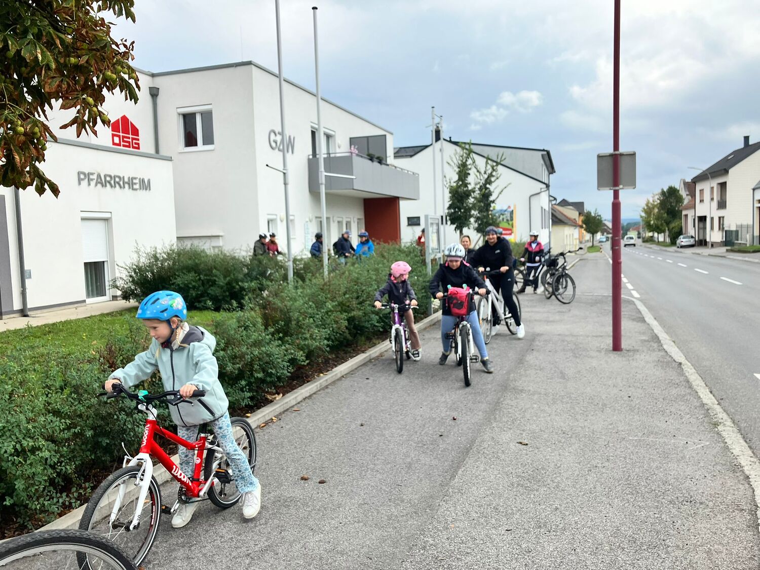 Trotz herbstlich frischer Temperaturen machten sich Jung und Alt gemeinsam auf den Weg: Unser Radausflug unter dem Motto „Pilger der Hoffnung“ führte uns zum Rückhaltebecken in Stoob.