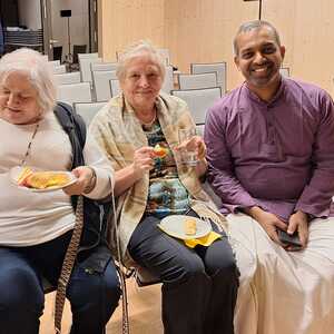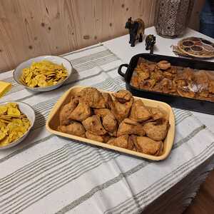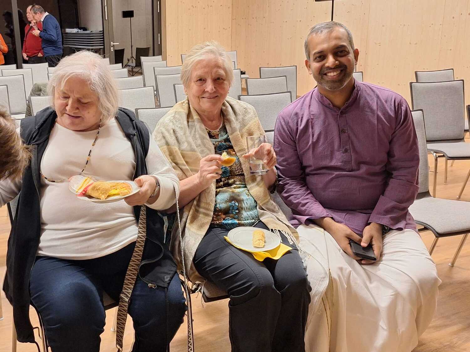 Nach dem Vortrag waren alle Gäste zu einer gemütlichen Agape eingeladen. Dort warteten sowohl indische Köstlichkeiten, wie Samosa und gebackene Bananen, als auch burgenländische Spezialitäten, die den kulturellen Bogen dieses Abends wunderbar abrundeten.