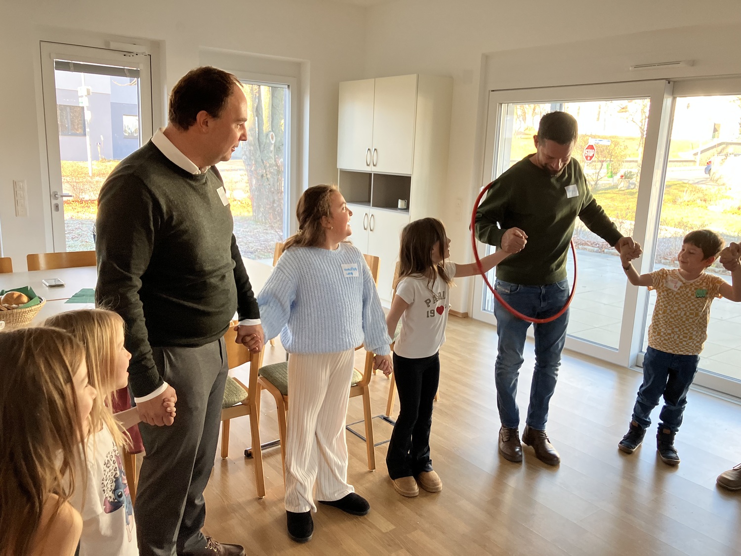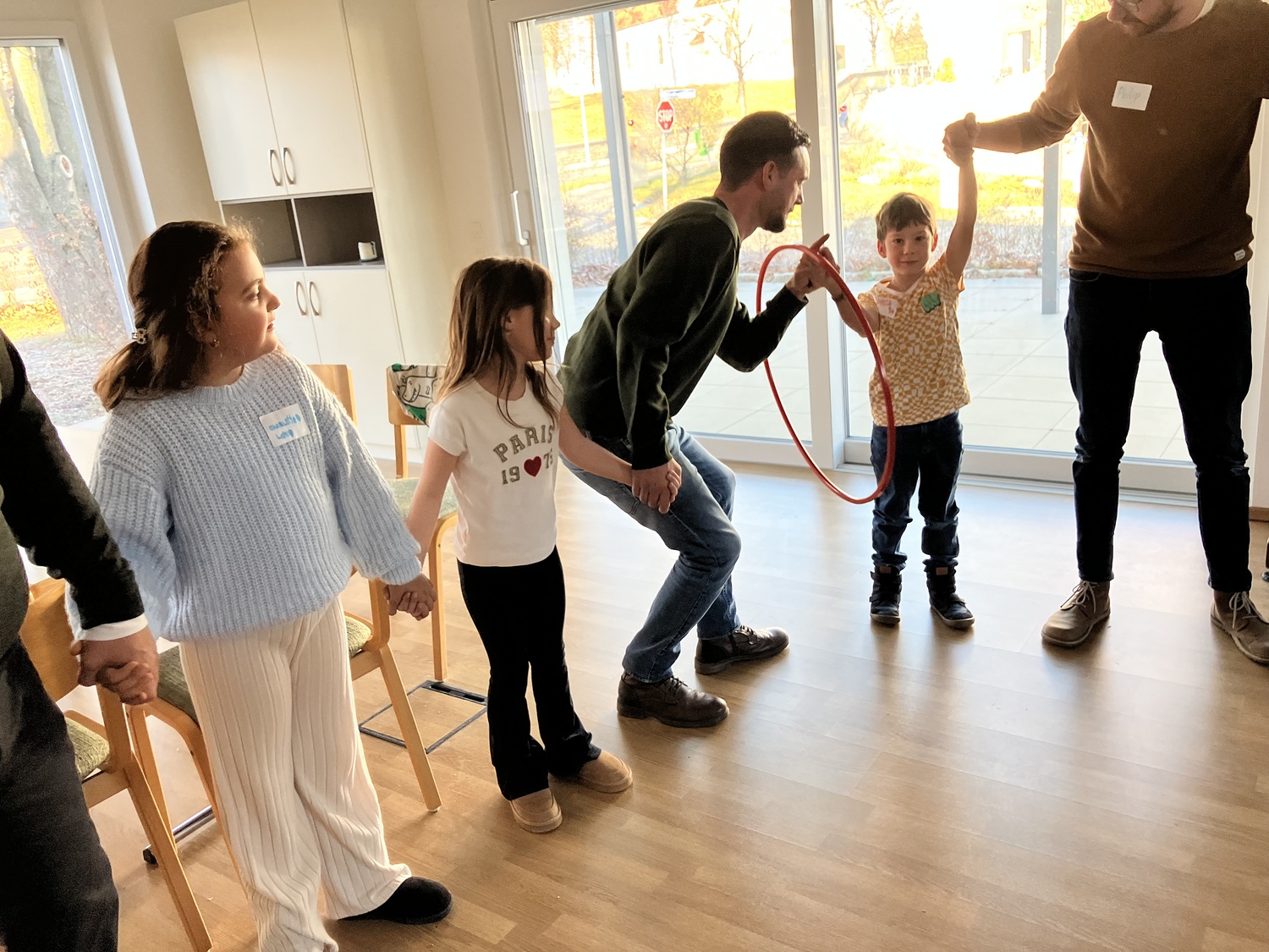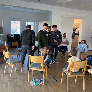 So wurden in verschiedenen Kreisspielen Themen wie gemeinsame Interessen, Hobbys aber auch Teamwork in den Vordergrund gestellt. Eine besondere Herausforderung war der “Eier-Flyer”, bei dem es das Ziel war mit Hilfe von Papier, Schere, Klebeband und Strohhalmen ein rohes Ei so zu präparieren, dass es bei einem Sturz aus ca. 3 Metern Höhe nicht kaputt ging.