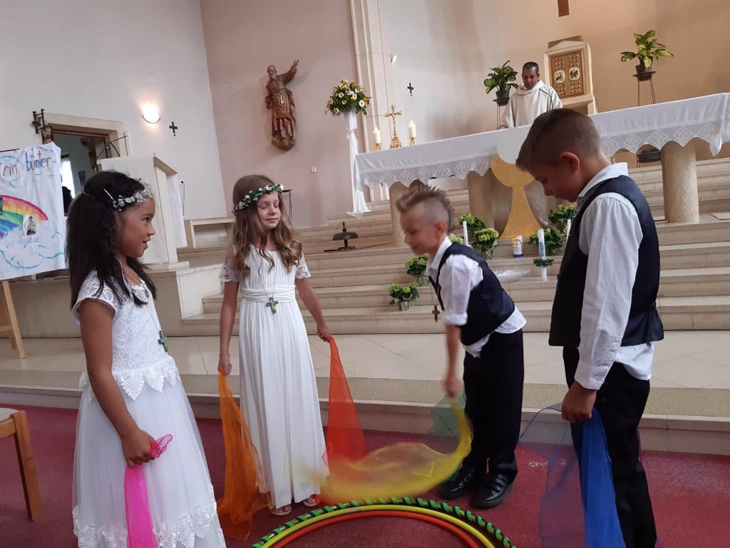 mit diesem Thema waren 4 Kinder aus Weppersdorf einige Monate unterwegs. In den Gruppenstunden, in den Gottesdiensten und im Religionsunterricht konnten die „Gottes-Farben“ entdeckt werden. Am 4. Juli empfingen die Kinder zum ersten Mal die Heilige Kommunion.