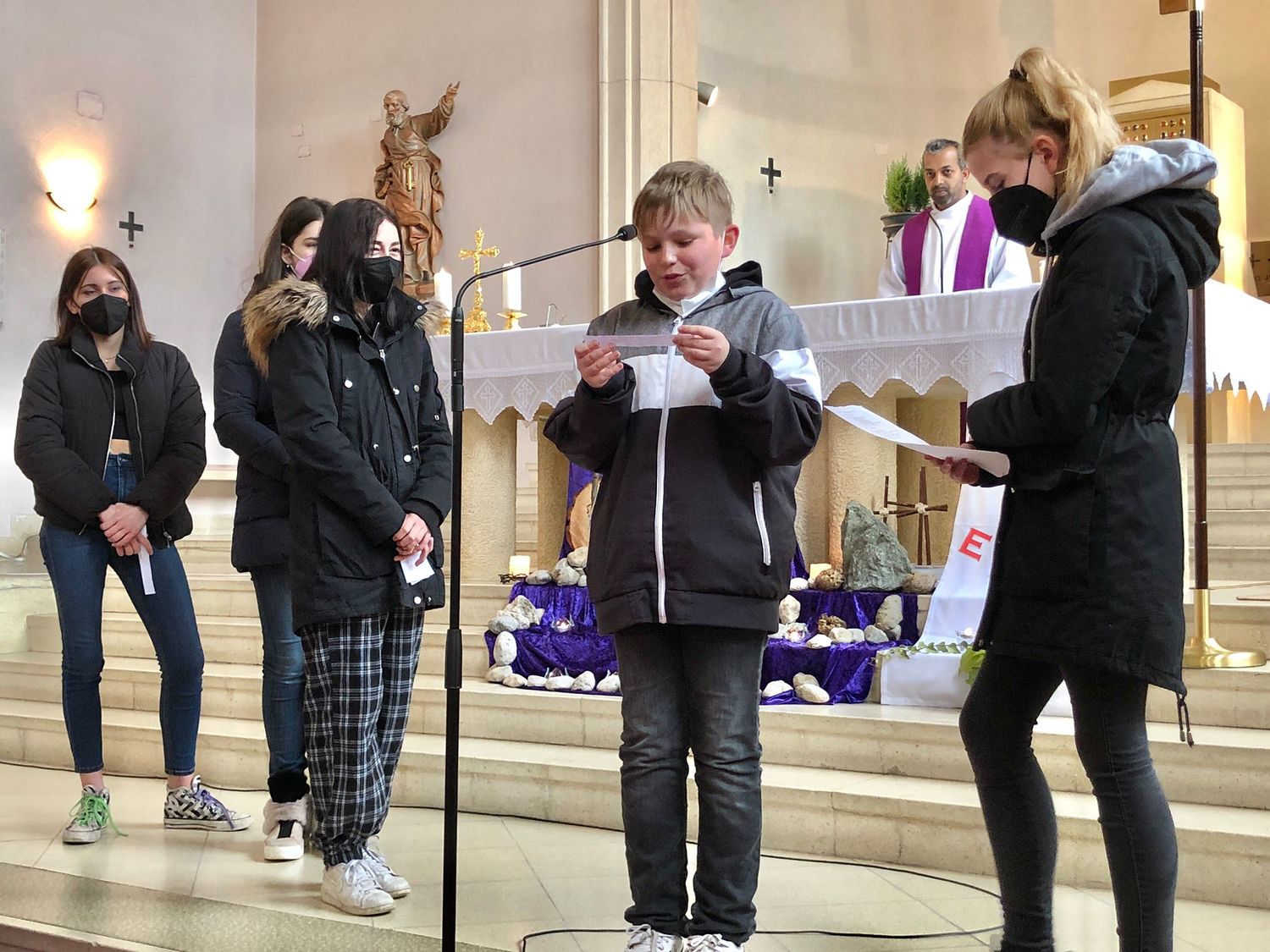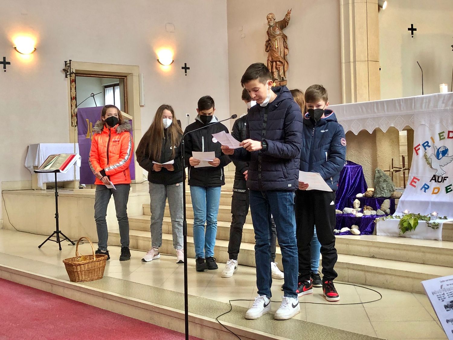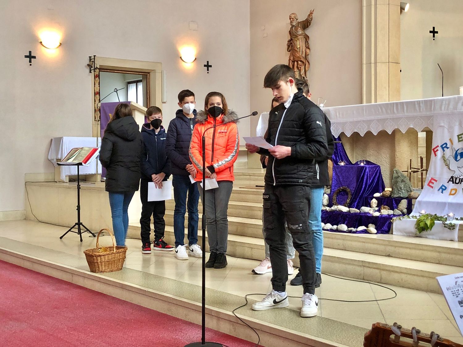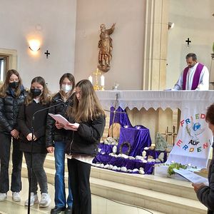 Die Jugendlichen versuchten herauszufinden, welchen Weg Christus heute geht. Bei jeder Station gaben uns die Firmlinge Impulse, was der Kreuzweg Jesu für uns und unsere Zeit bedeuten kann und wie der Kreuzweg Jesu auch zu unserem Kreuzweg wird.