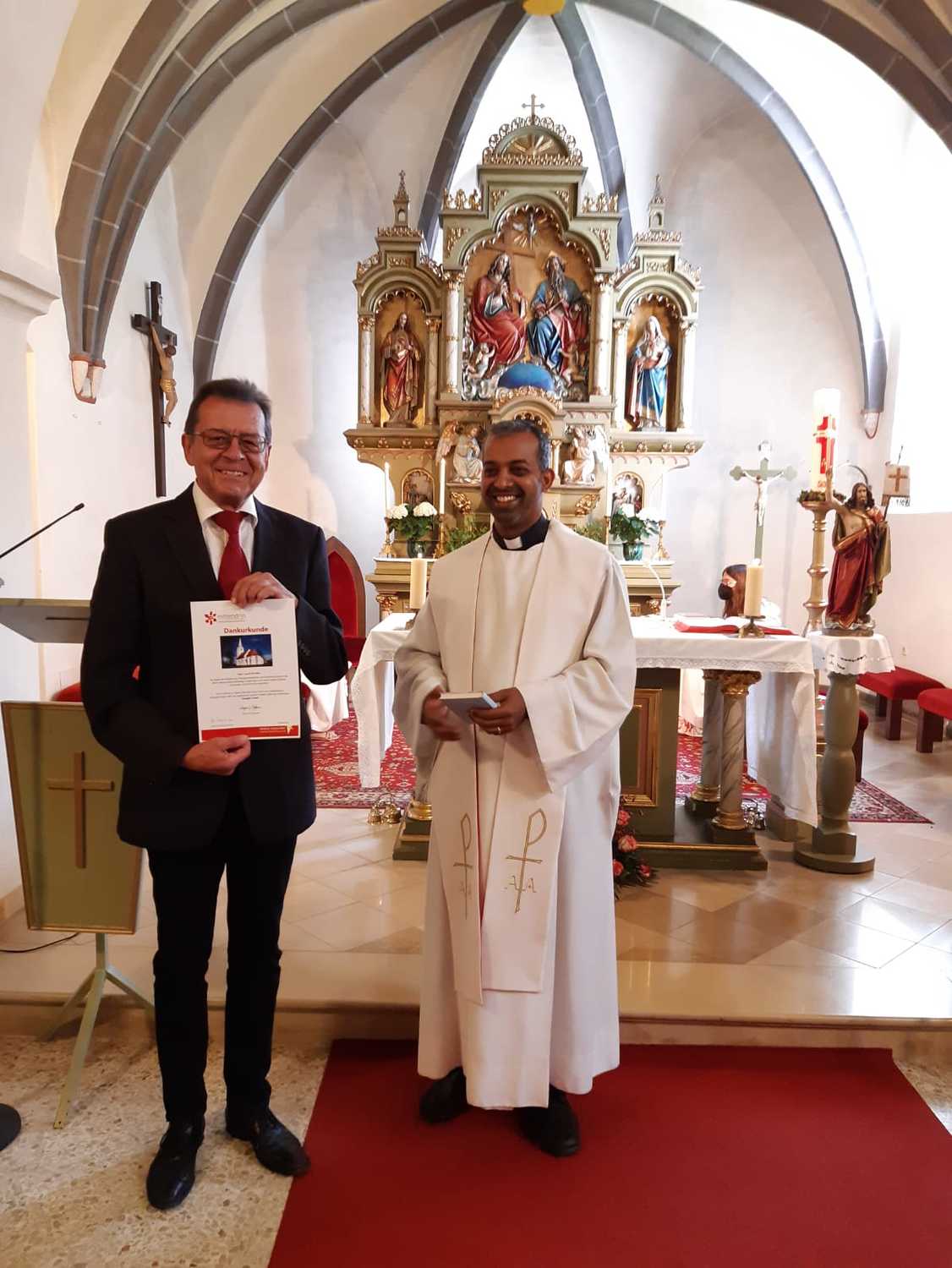 Gleichzeitig erfolgte der Dank an die ausgeschiedenen Pfarrgemeinderäte, denen Pfarrer Shinto eine Dankurkunde und ein kleines Geschenk überreichte.