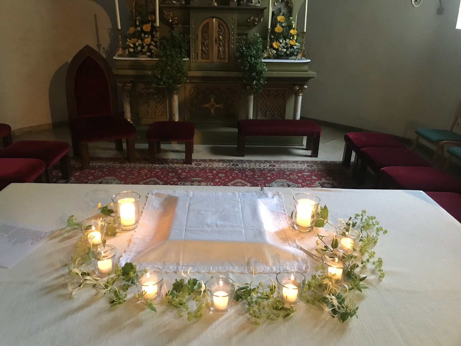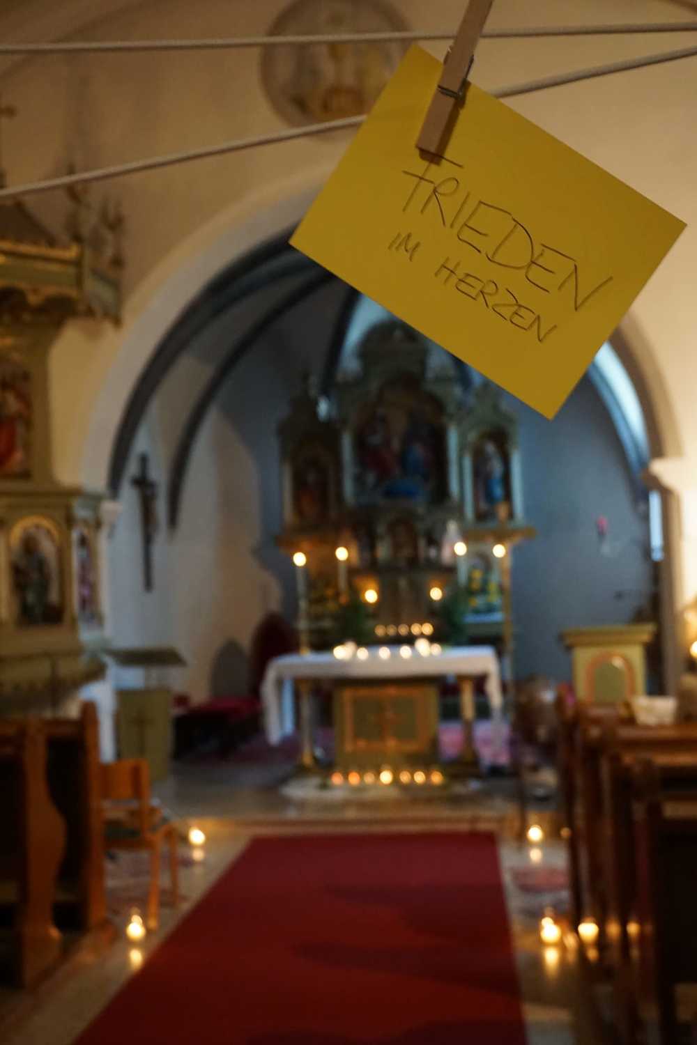 Aus unserem Alltag aussteigen und in einen Raum der Ruhe und Stille begeben, das wollten wir an diesem Abend, als wir uns in die wunderbar geschmückte Kirche begaben. Im persönlichen Gebet, in Stille, beim Hören von Meditationen und Musik, beim gemeinsamen Gebet einer Friedensandacht und mit dem eucharistischen Segen konnten wir dem Geist der Versöhnung Raum geben und um das Geschenk des Friedens bitten.