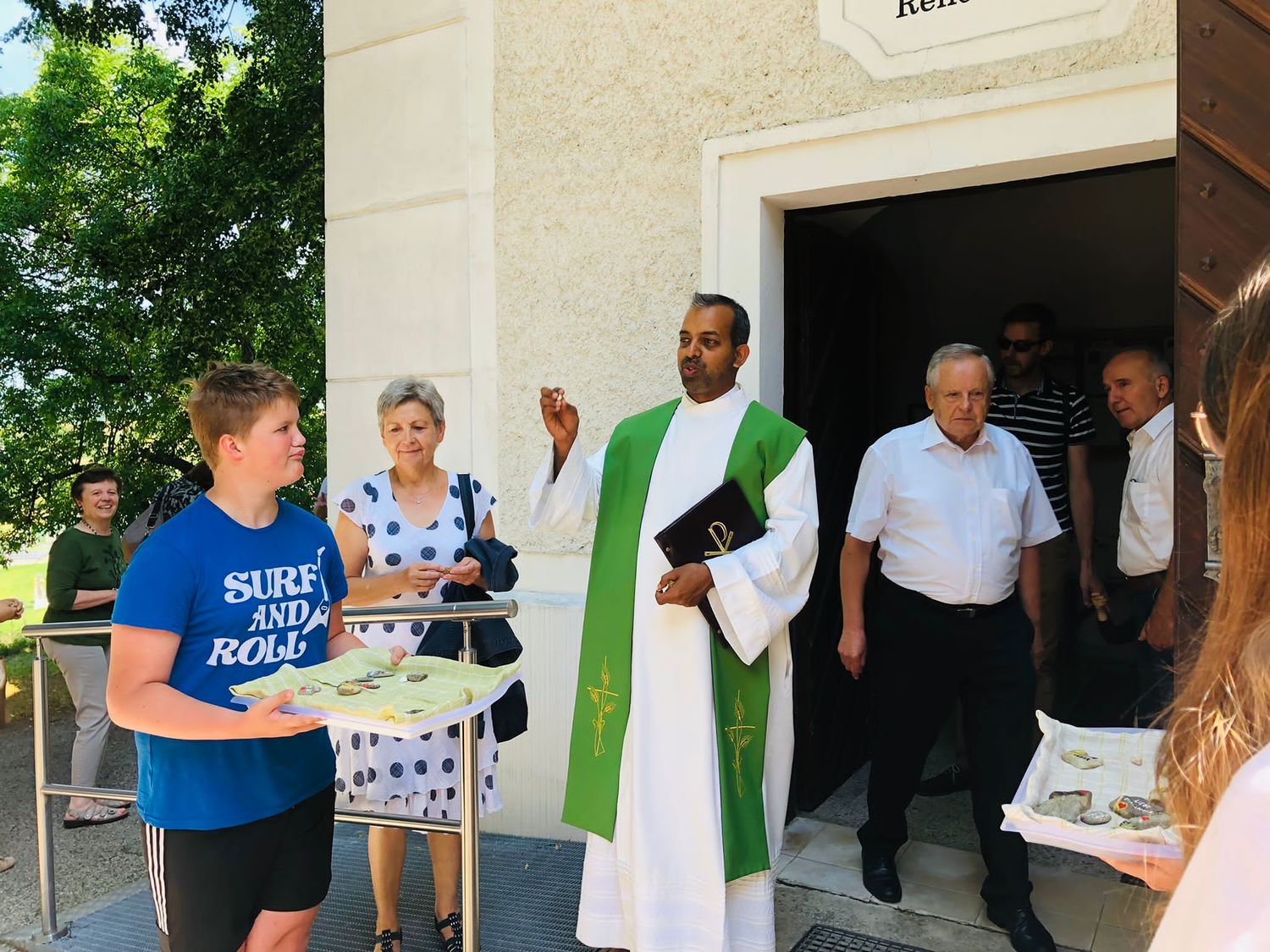 In der Kirche ist auch ein leerer Korb zu finden. Die Menschen werden gebeten, von ihrem Urlaub, ihrer Ferienzeit eine kleine Erinnerung mitzubringen – nichts Gekauftes, vlt. eine Muschel vom Strand, ein Blatt von einem Baum, ein Bild, oder sonst ein Gegenstand, wo du Freude verspürst und an deine Pfarrfamilie zu Hause denkst.