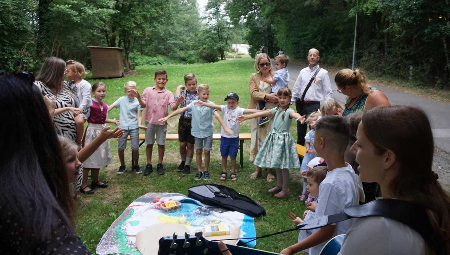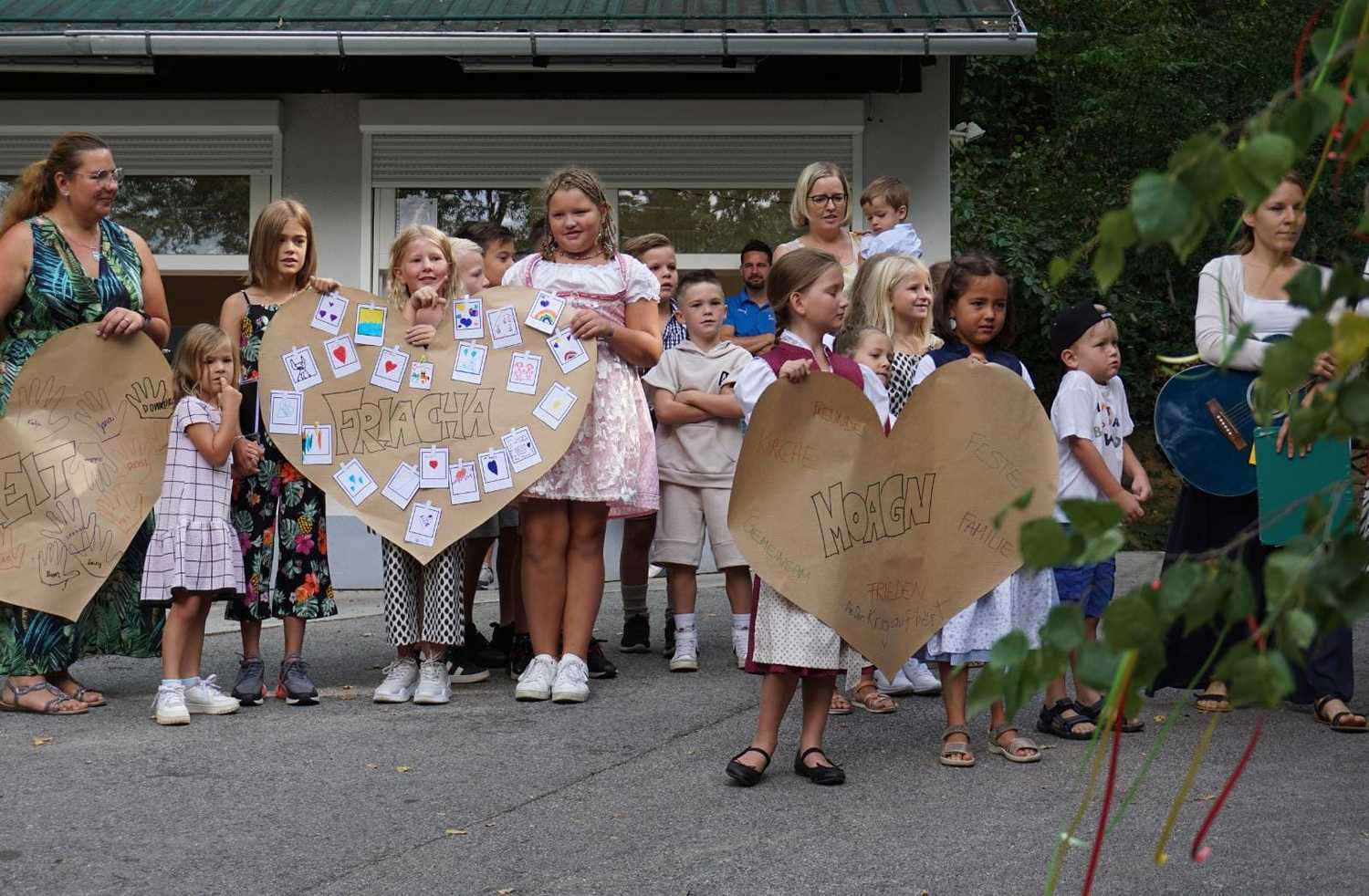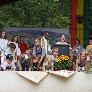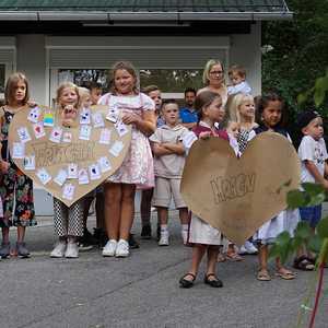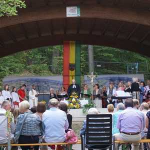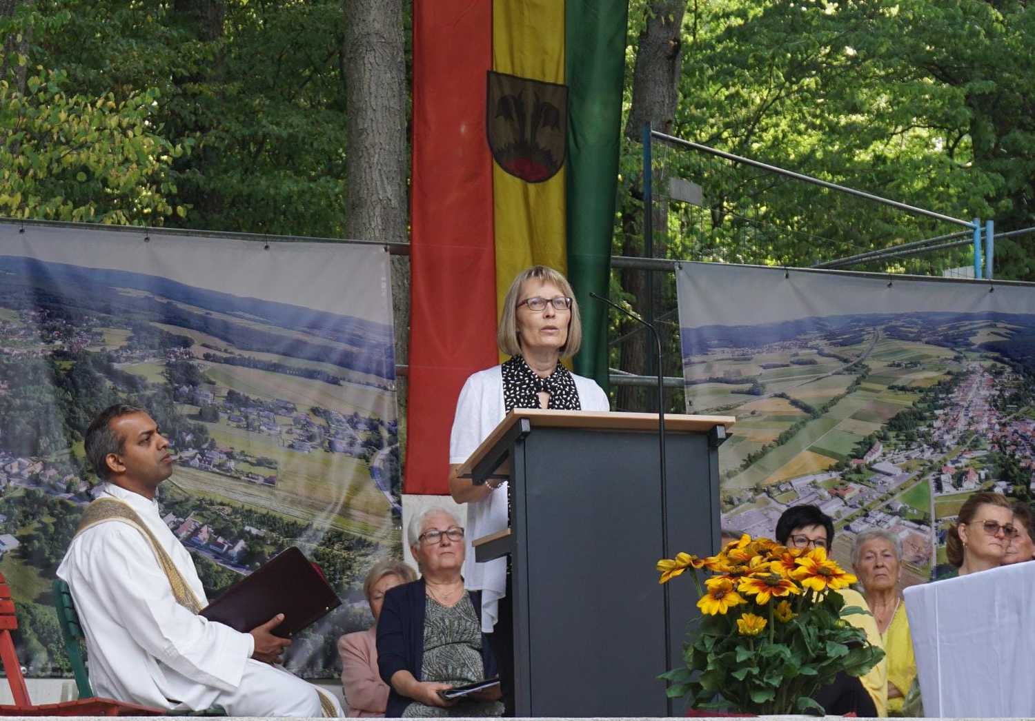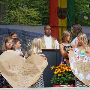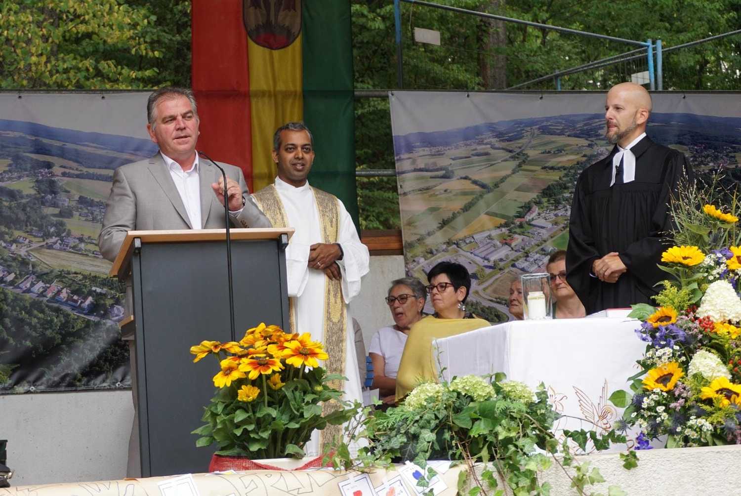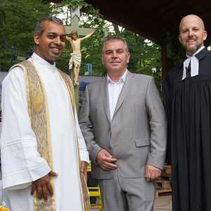 Die 800-Jahr-Feier, die am 14. August begangen wurde, war ein gelungenes Fest, zeigte sich doch das Wetter von seiner besten Seite. Begonnen wurde der Tag mit einem ökumenischen Festgottesdienst mit Hr. Pfarrer Stefan Grauwald und unserem Hr. Pfarrer Shinto Michael. Mitgestaltet wurde die Feier von den Kindern, die außerhalb der Kirche einen Kinderwortgottesdienst feierten und dann mit ihren selbstgestalteten Herzplakaten dazu kamen. Als kleine Erinnerung verteilten die Kinder am Ende des Festes selbstgebastelte Herzen mit dem Bibelspruch zum heutigen Evangelium Joh. 15,12: "Liebt einander, so wie ich euch geliebt habe."