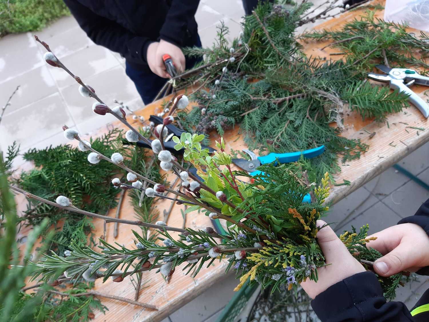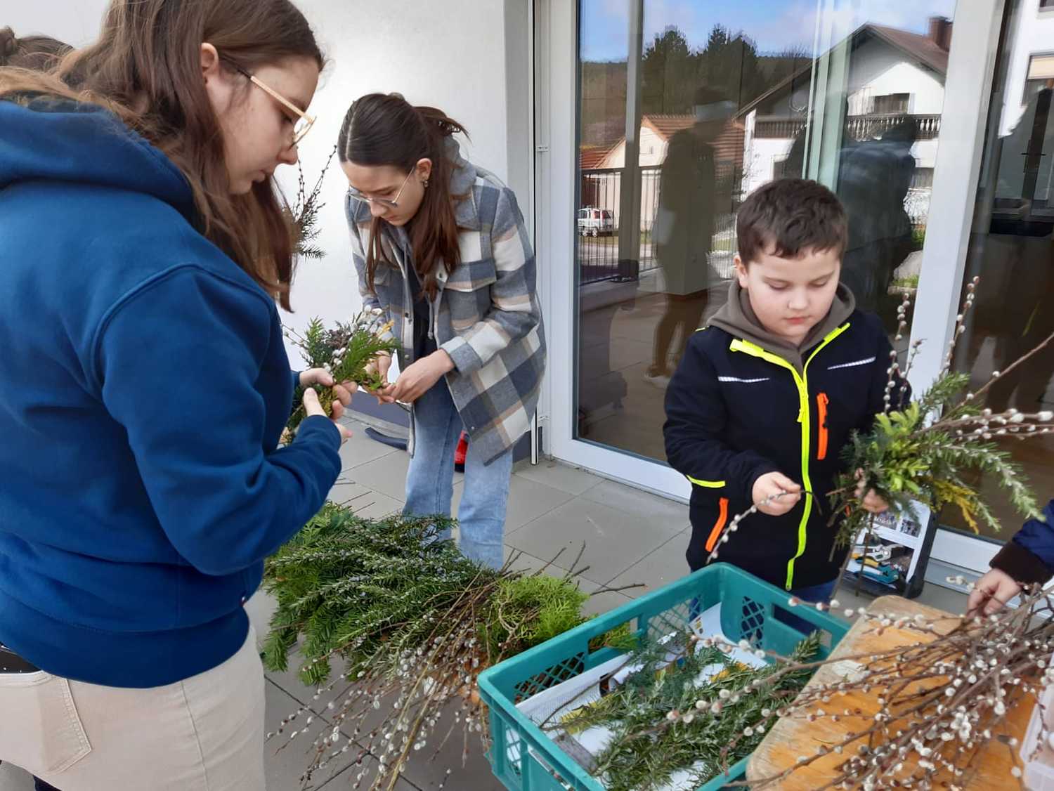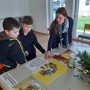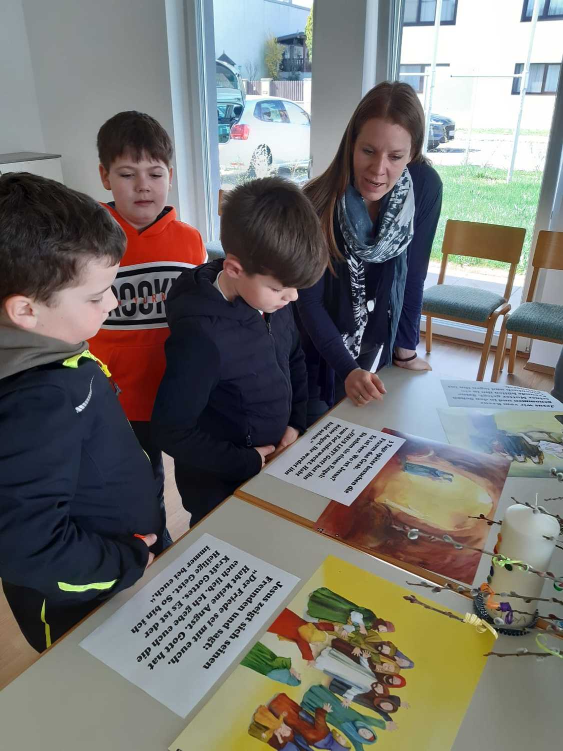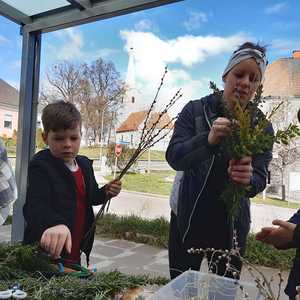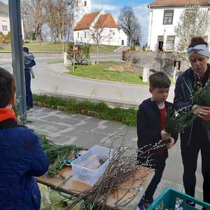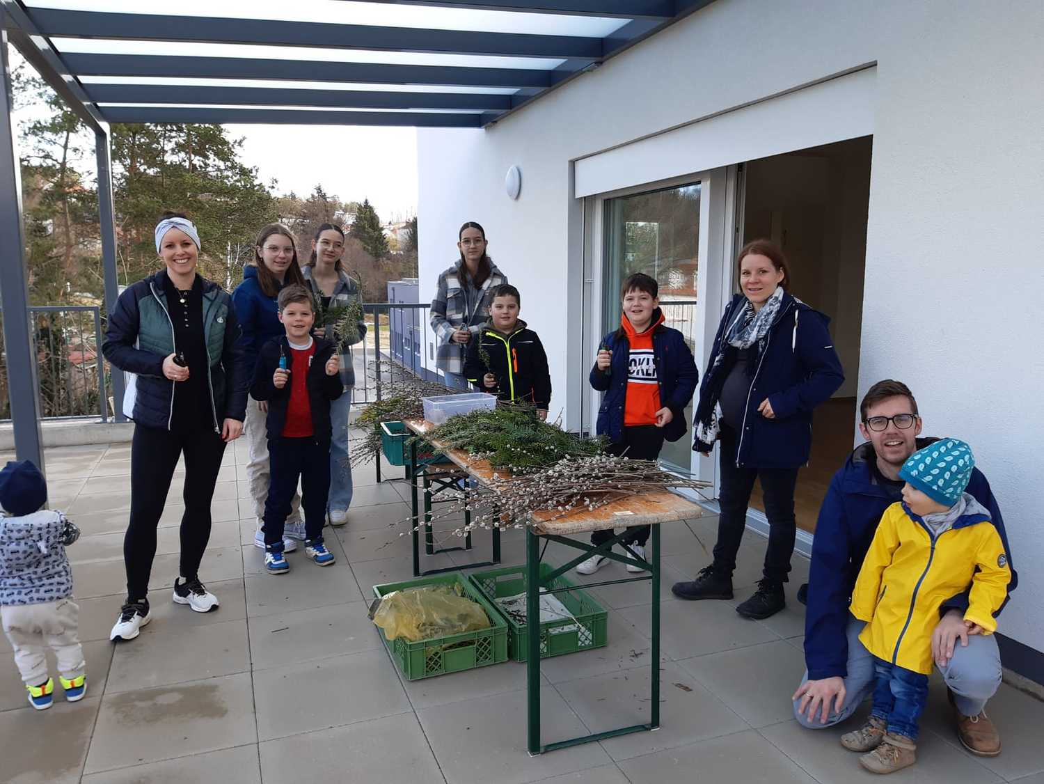 Damit auch wir unsere Freude zeigen können und so wie die Menschen damals Jesus begrüßen können, haben die Kinder unter Anleitung von Jungscharleiterin Katja und Tischmutter Carina wunderschöne Palmbuschen mit den Kindern gebunden. Gemeinsam wurde auch eine Kerze für den Pfarrhof gebastelt und die Fenster des Pfarrhofes wurden mit Bildern und Texten der Karwoche geschmückt.
