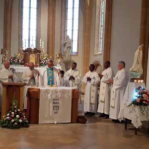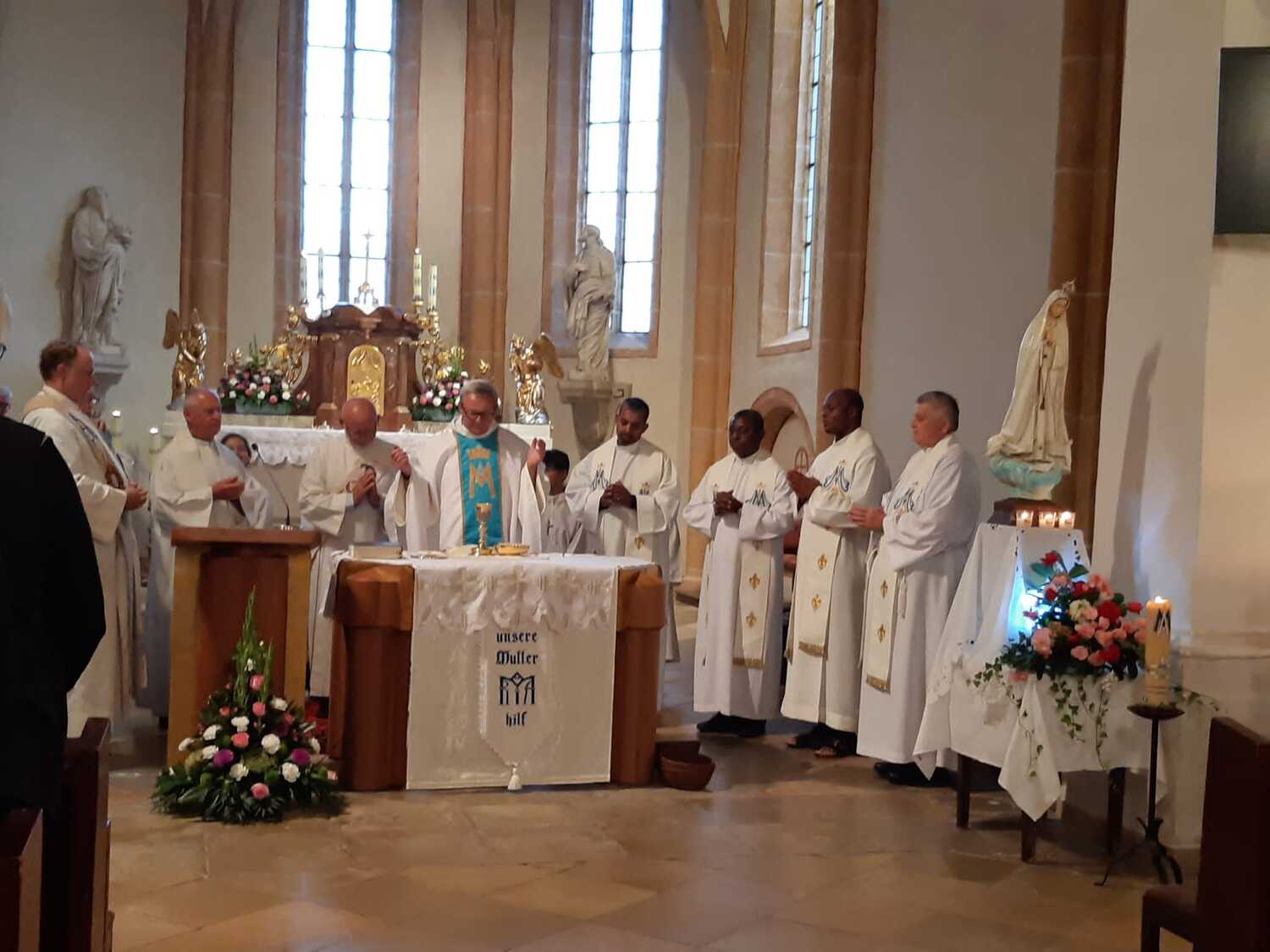 In Unterfrauenhaid angekommen, nahmen wir an der monatlichen Fatimafeier teil, in der diesmal auch unser Dechant Janusz Jamróz verabschiedet wurde, der im Anschluß noch zu einer kleinen Agape eingeladen hatte.