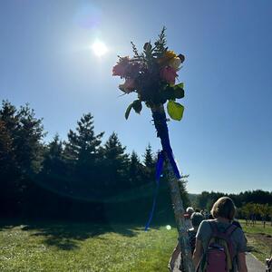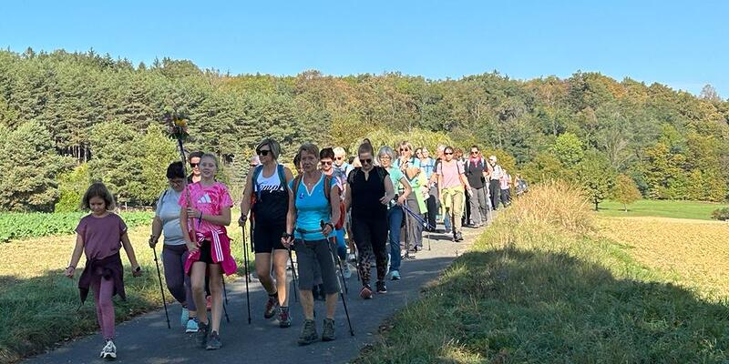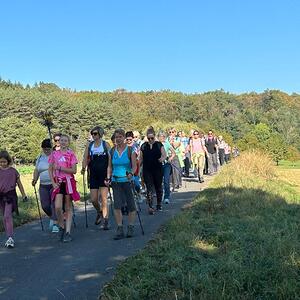 Mit diesem Gebet, mit dem gesegneten Pilgerstab und den Segen Gottes, erteilt von Pf. Shinto, machten sich 53 Frauen und 4 Männer auf den Weg um ca. 10 km bei strahlendem Sonnenschein, am Fuße der Landseer Berge zu pilgern.
