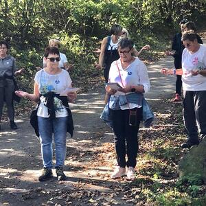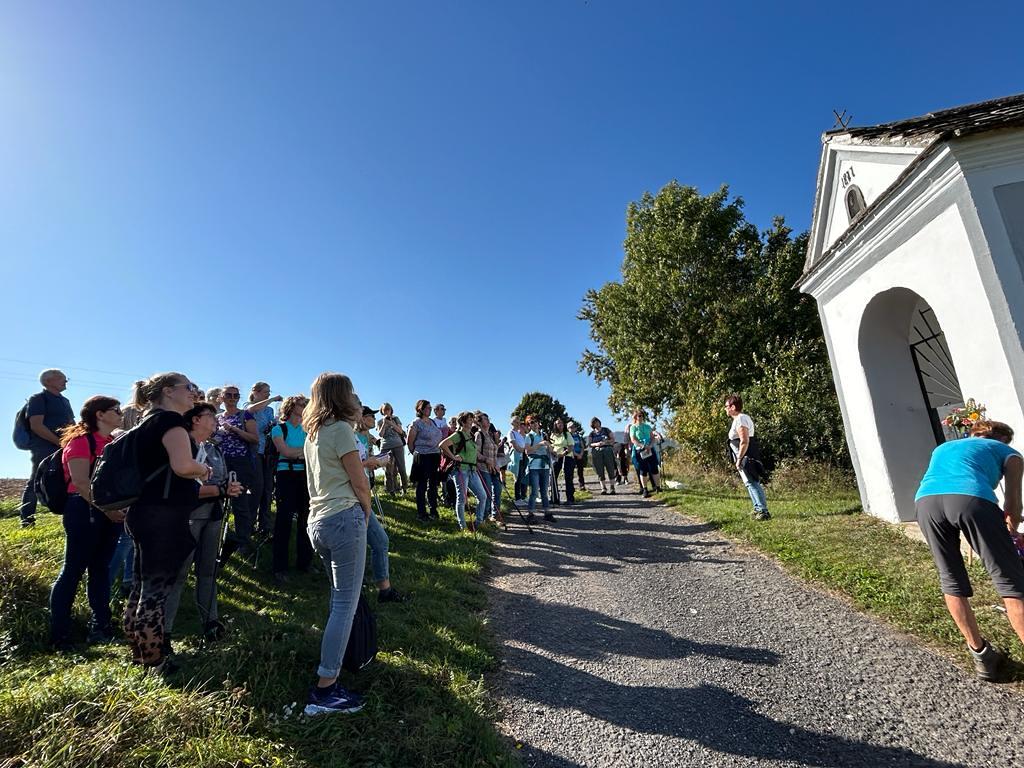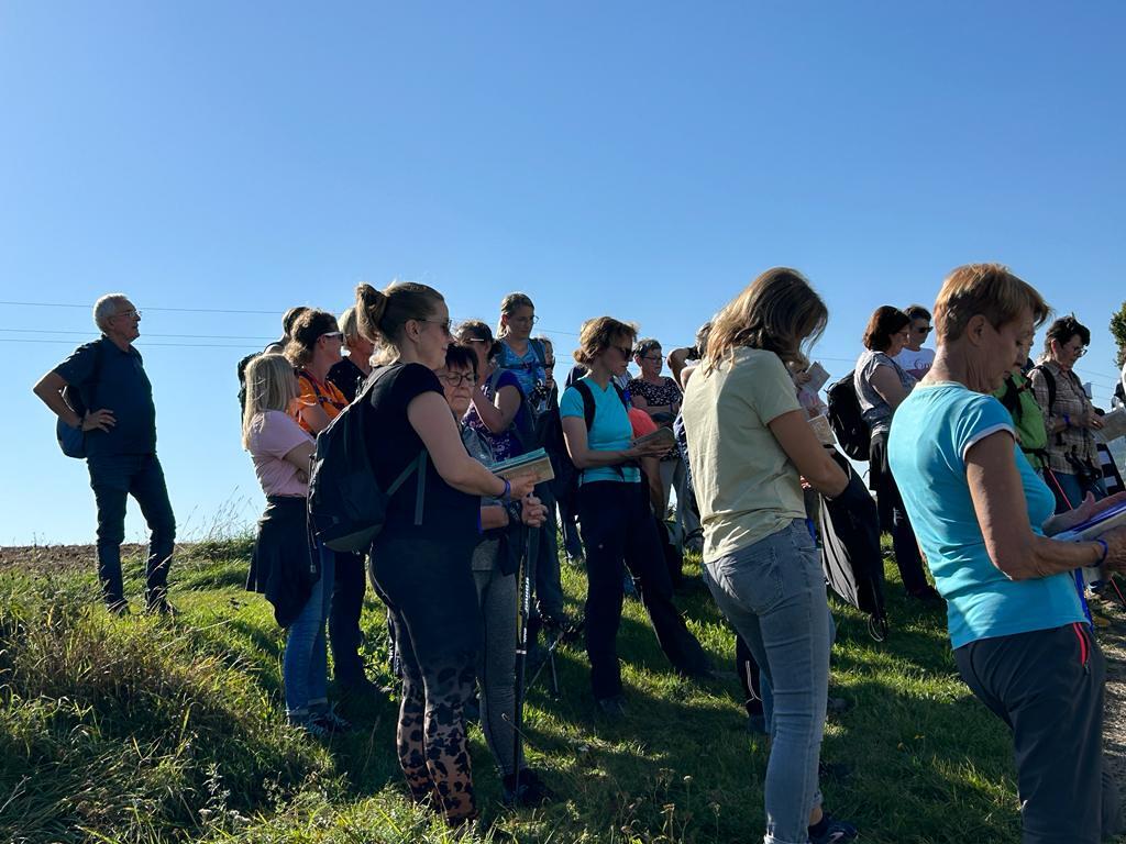 Bei der 1. Station ein Marterl mit einer Pietastatue wurden meditative Gedanken und Gebete gelesen und ein Marienlied gesungen. Danach ging es weiter Richtung Lindgraben zum Ökumenischen Kreuz. Bei zwei weiteren Stationen war Zeit zum Innehalten. Angeleitet durch meditative Texte, Gesprächsanregungen bzw. auch in Stille nachzudenken ging es weiter bis zur Florianikapelle.