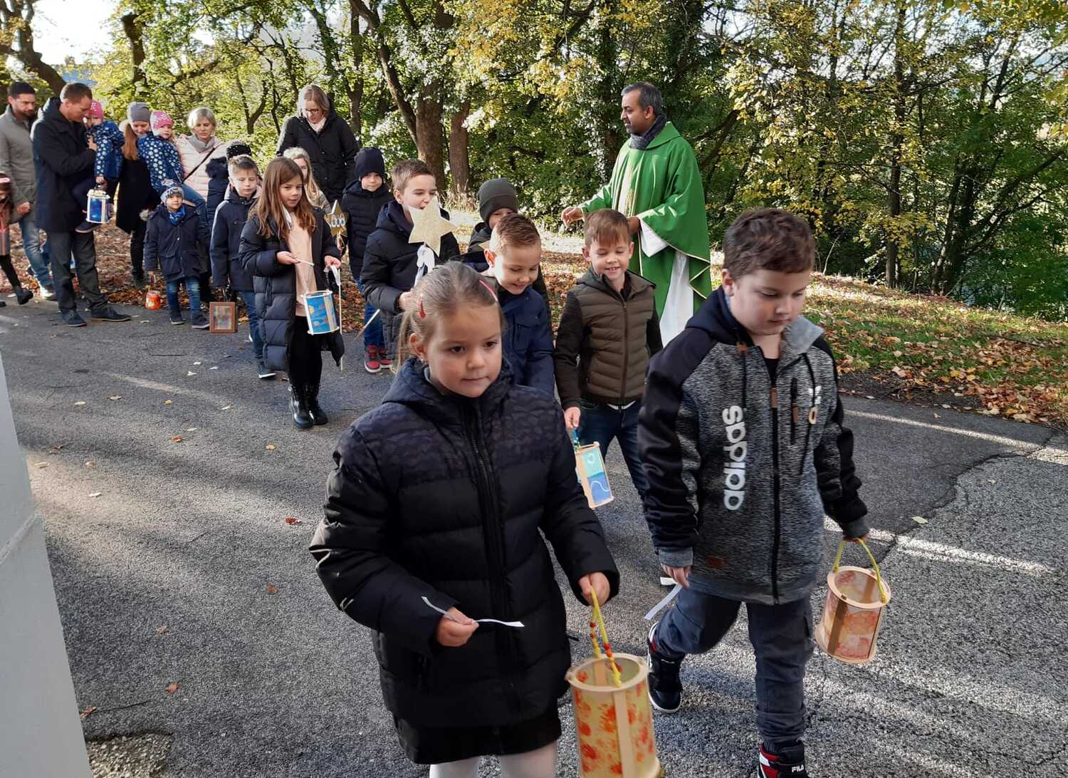 Die Kinder und die Firmlinge, die im Gottesdienst dem Volk vorgestellt wurden, zogen mit ihren Laternen mit Hr. Pfarrer Shinto in die Kirche ein.