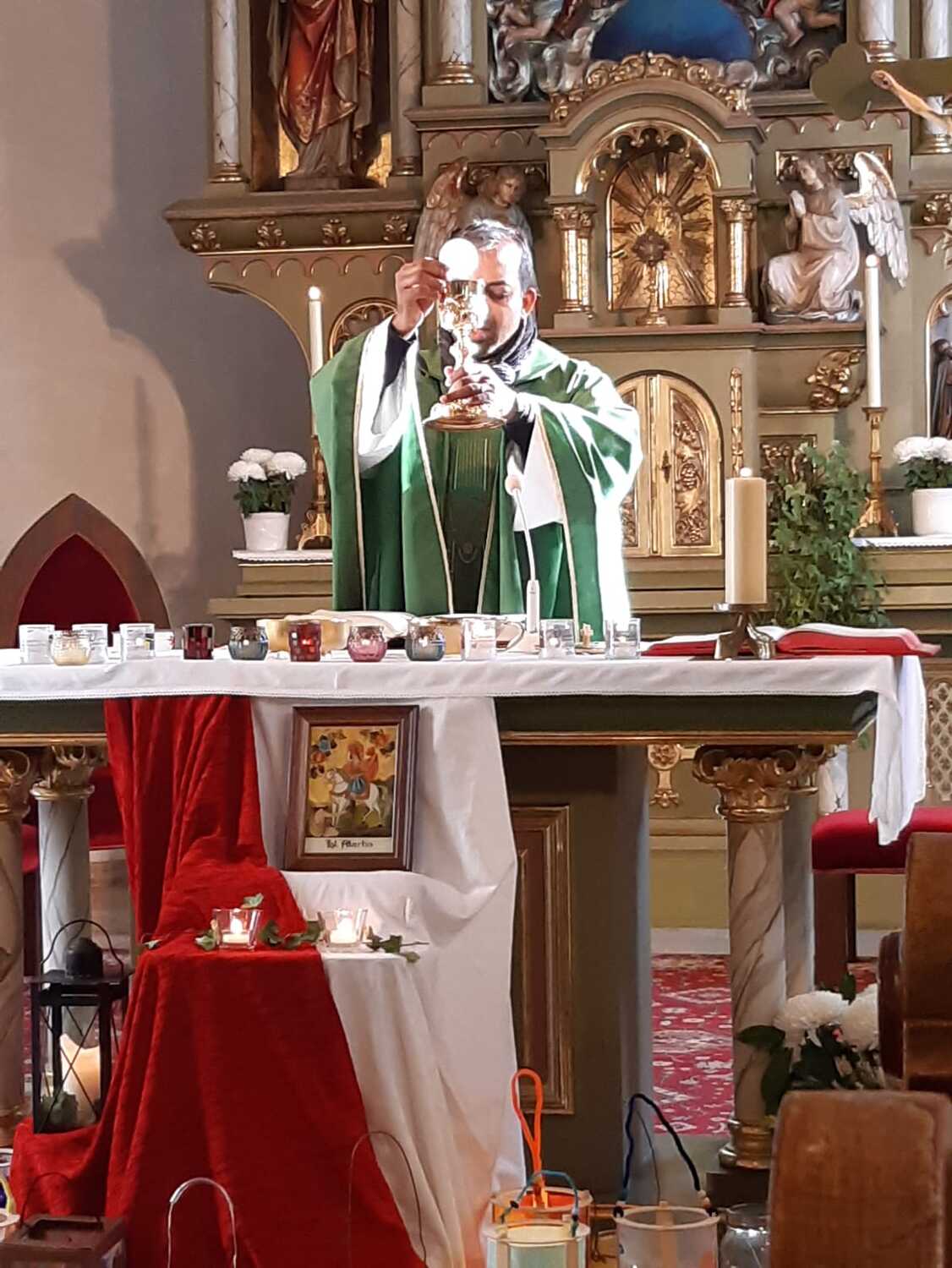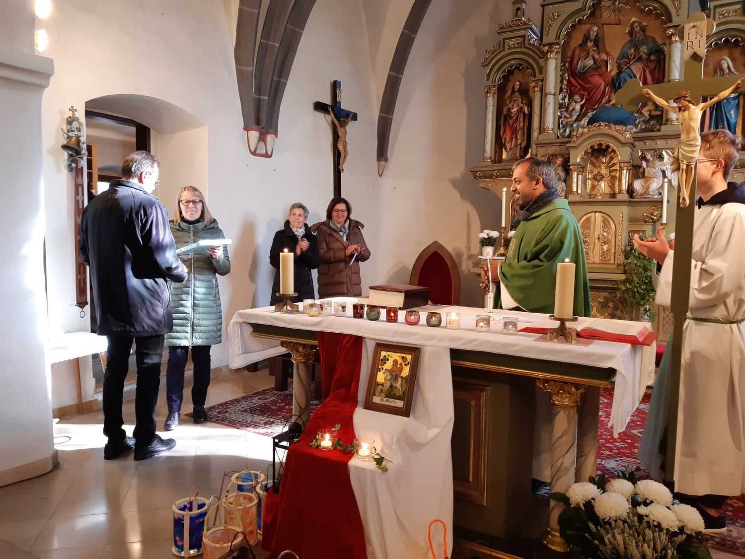 Zum Schluß entsendete Pfarrer Shinto noch Frau Maria Winterer und Frau Marianna Kovaschits als neue Kommunionhelferinnen in ihren Dienst.