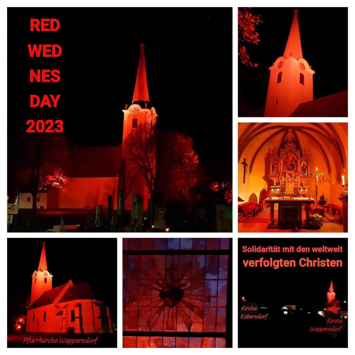 Red Wednesday wurde auch in der Pfarre Weppersdorf in zwei Einheiten begangen. Ab Mittwoch erstrahlte unsere Kirche in Weppersdorf im schönen ROT.