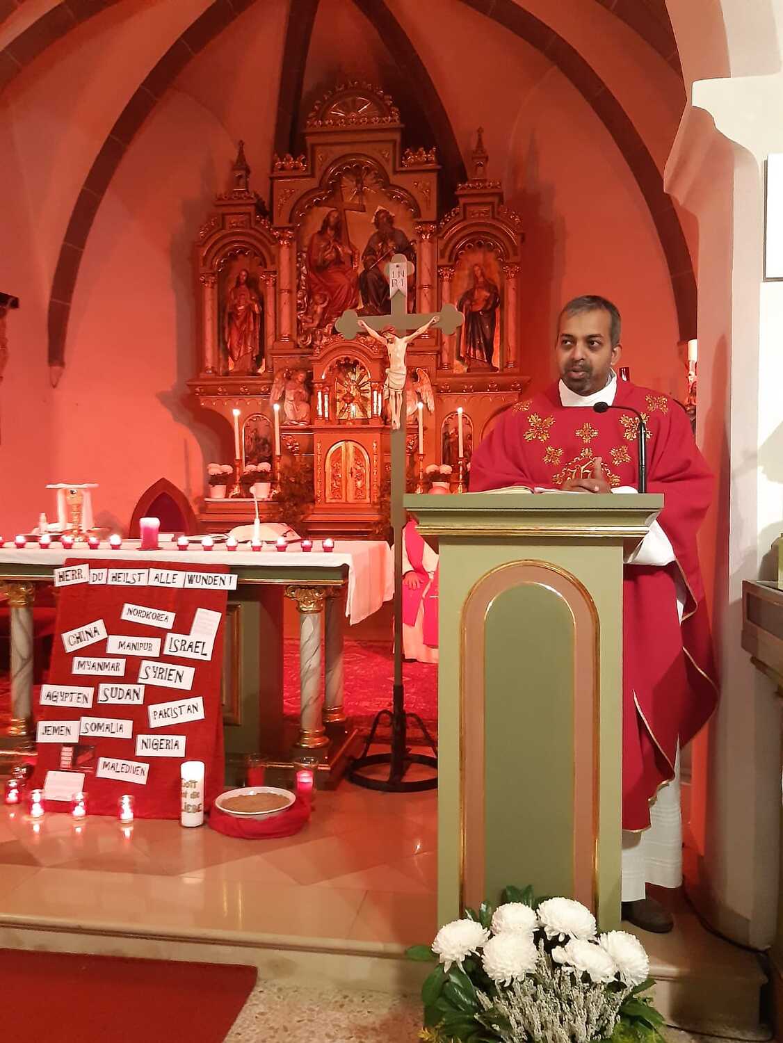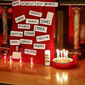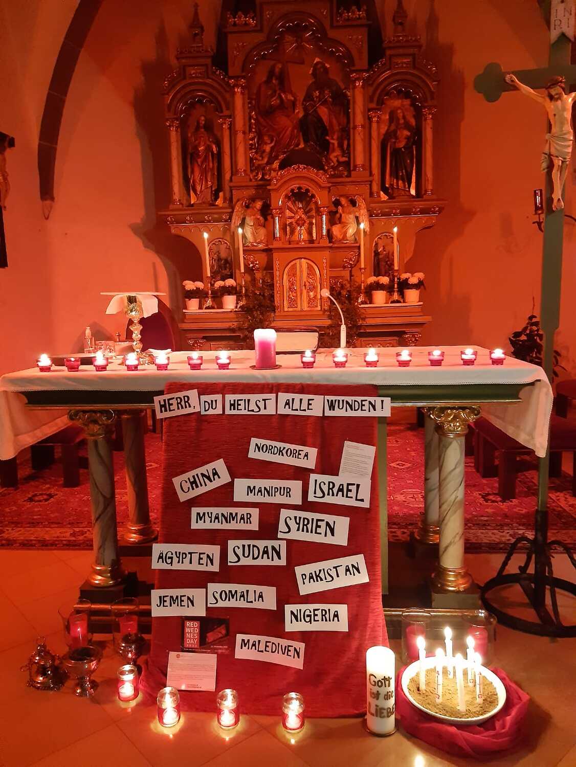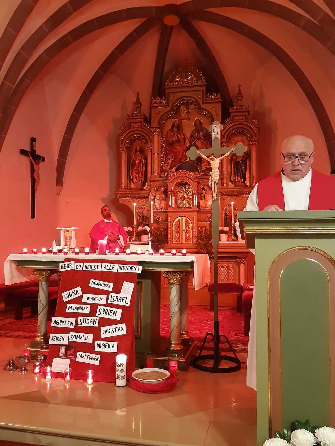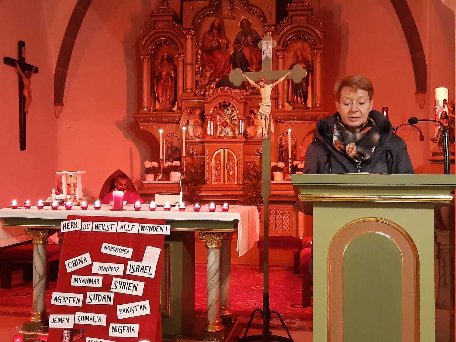 Auch der extra dafür gestaltete Kircheninnenraum und passsende Lieder versetzte die Gläubigen in eine besondere geschwisterliche Verbindung mit dem leidenden Volk Gottes.