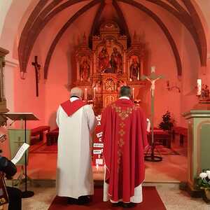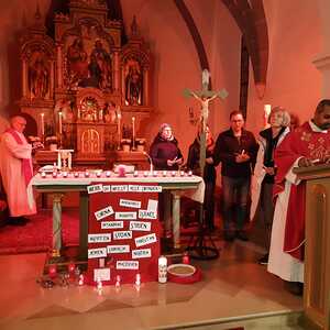 Am Freitag Abend folgte der so wichtige zweite Teil - die Eucharistie. Pfarrer Shinto, Altpfarrer Mück und der ganze Pfarrverband haben in einer sehr berührend gestalteten Messe unserer verfolgten Schwestern und Brüder gedacht, aber auch die Täter der Liebe Gottes übergeben.