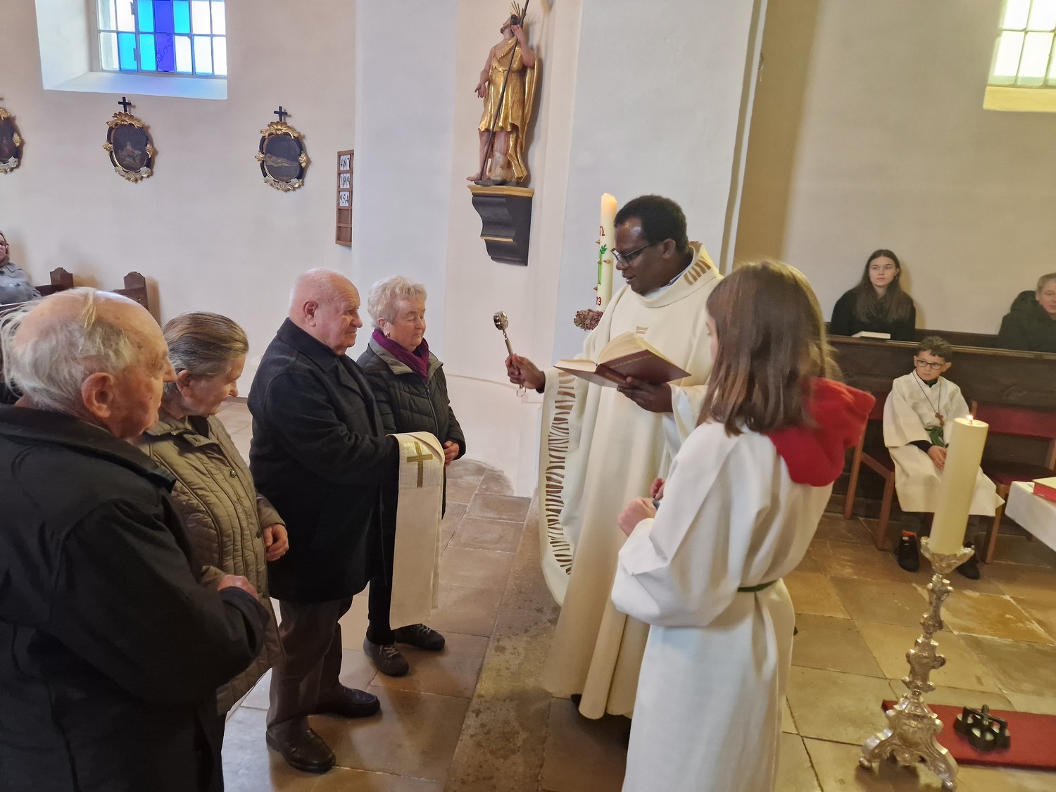 Der Einladung zum Sonntag der Ehejubilare sind zahlreiche Ehepaare gefolgt. Die Eucharistiefeier wurde von Pfm. Basil mit einem besonderen Segen für die Ehepaare gestaltet. Anschließend wurde im Pfarrhof mit einem Gläschen Sekt angestoßen.