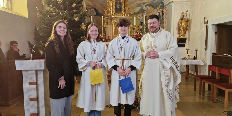 Gute acht Jahre haben Sophie Schütz und Jakob Reisner ihren Dienst als Ministranten getan. Die Pfarrgemeinde darf sich nun sehr herzlich für die tolle Arbeit bedanken. Wir wünschen weiterhin alles Gute und Gottes Segen auf dem weiteren Lebensweg!