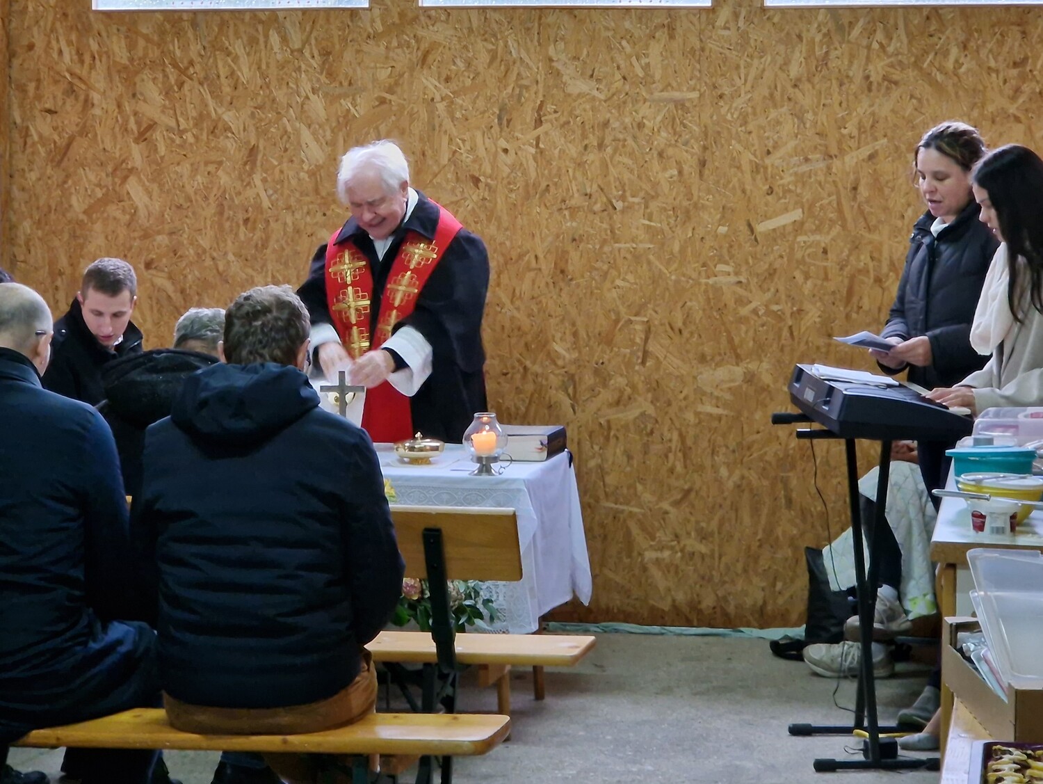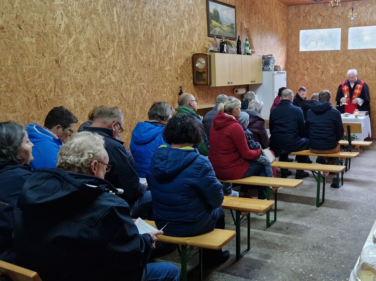 Beim Blumauer Kirtag stürmte und regnete es heftig. Einige Messbesucher trotzten dem Wetter und fanden sich im naheliegenden Stadel zur Feier der Hl. Messe mit Pfarrer Renner ein. Nach der Messfeier luden die Blumauer/innen traditionell zur Agape ein.