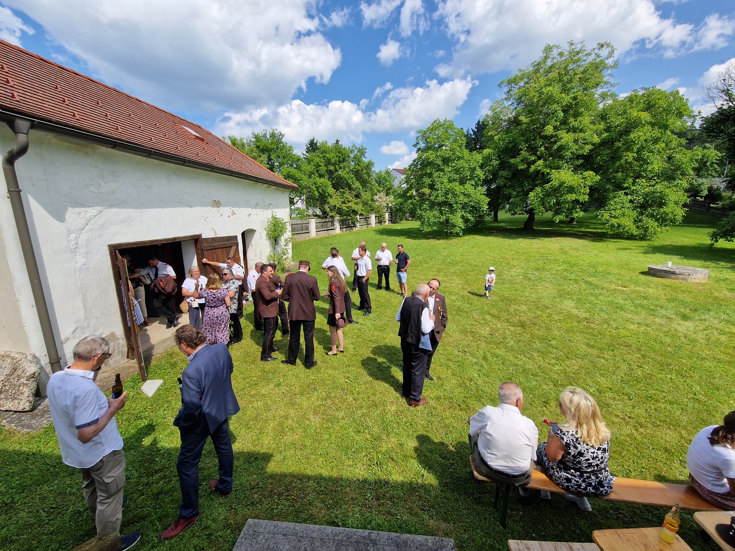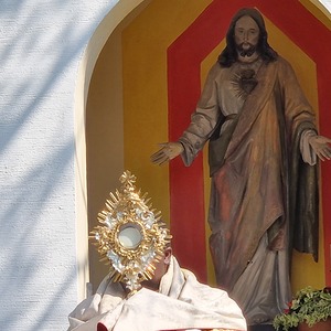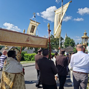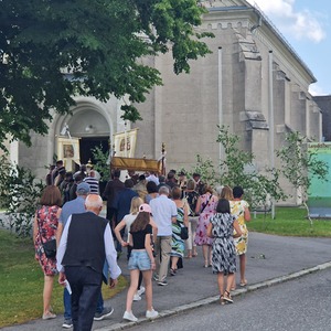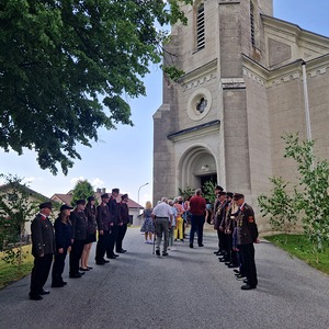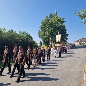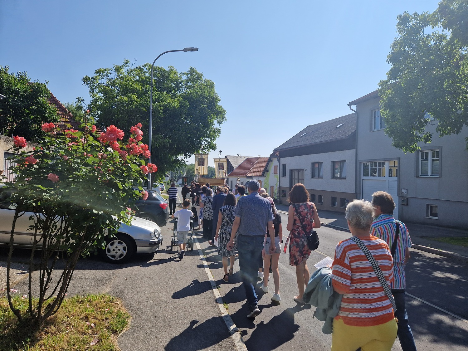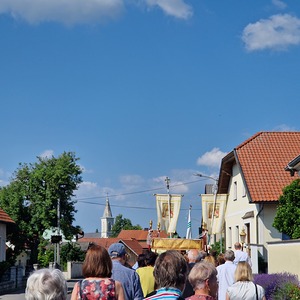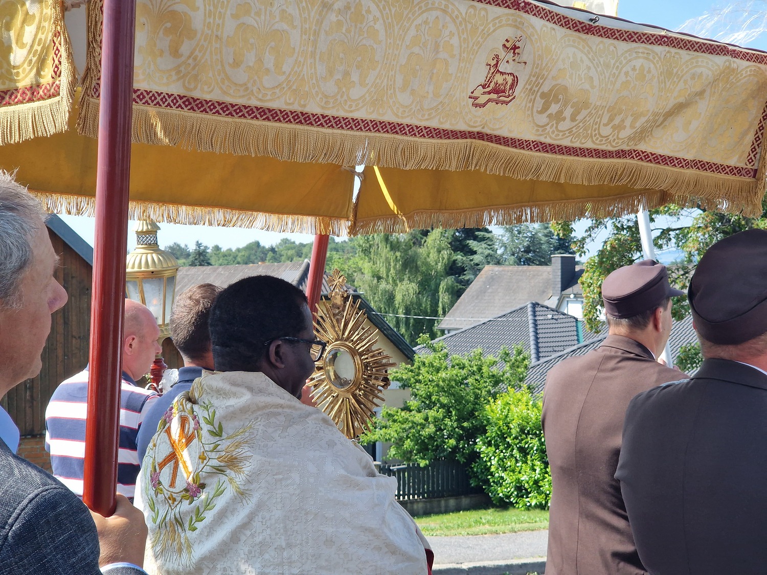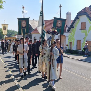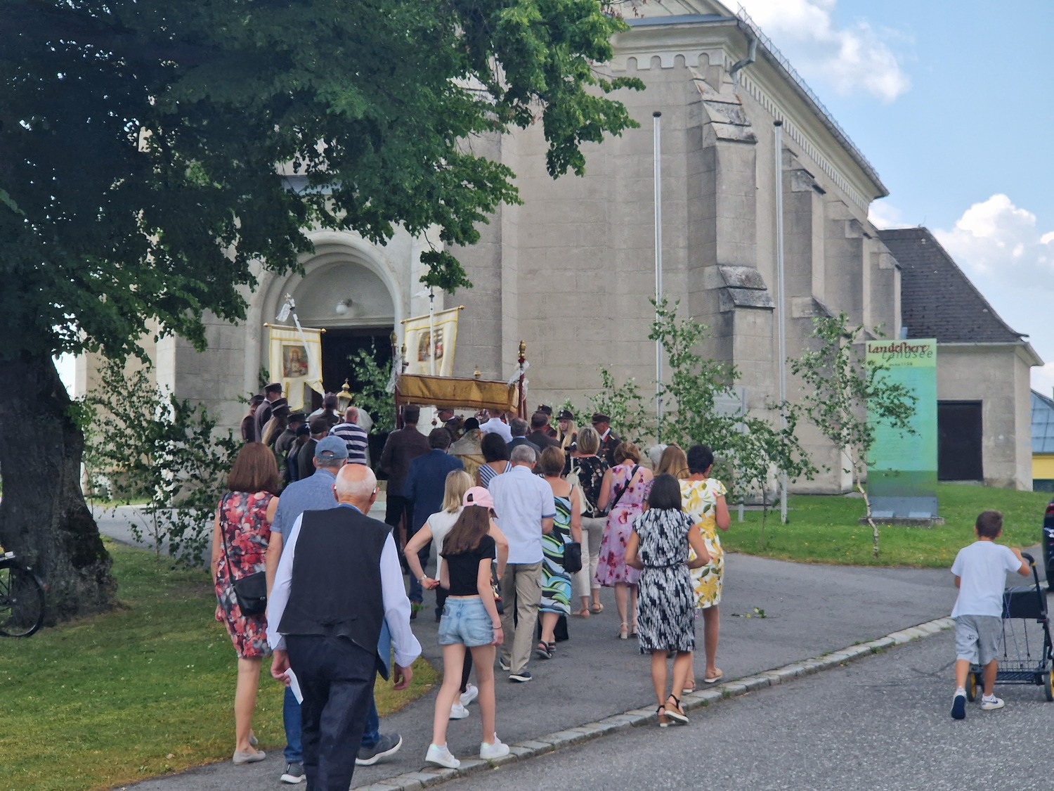 Bei sommerlichen Temperaturen fand nach der Heiligen Messe die Fronleichnamsprozession statt. Die Monstranz wurde durch die Ortschaft getragen und bei zwei Stationen spendete Pfarrer Basil den Eucharistischen Segen.