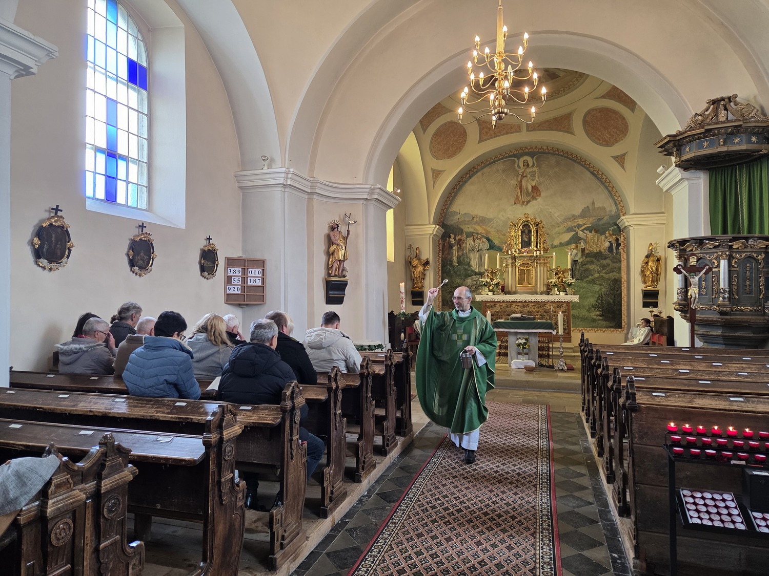 Der Einladung zum Sonntag der Ehejubilare sind zahlreiche Ehepaare gefolgt. Die Eucharistiefeier wurde von Pfarrer Gregor mit einem Segen für die Ehepaare gestaltet. Anschließend wurde im Pfarrhof mit einem Gläschen Sekt angestoßen.