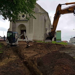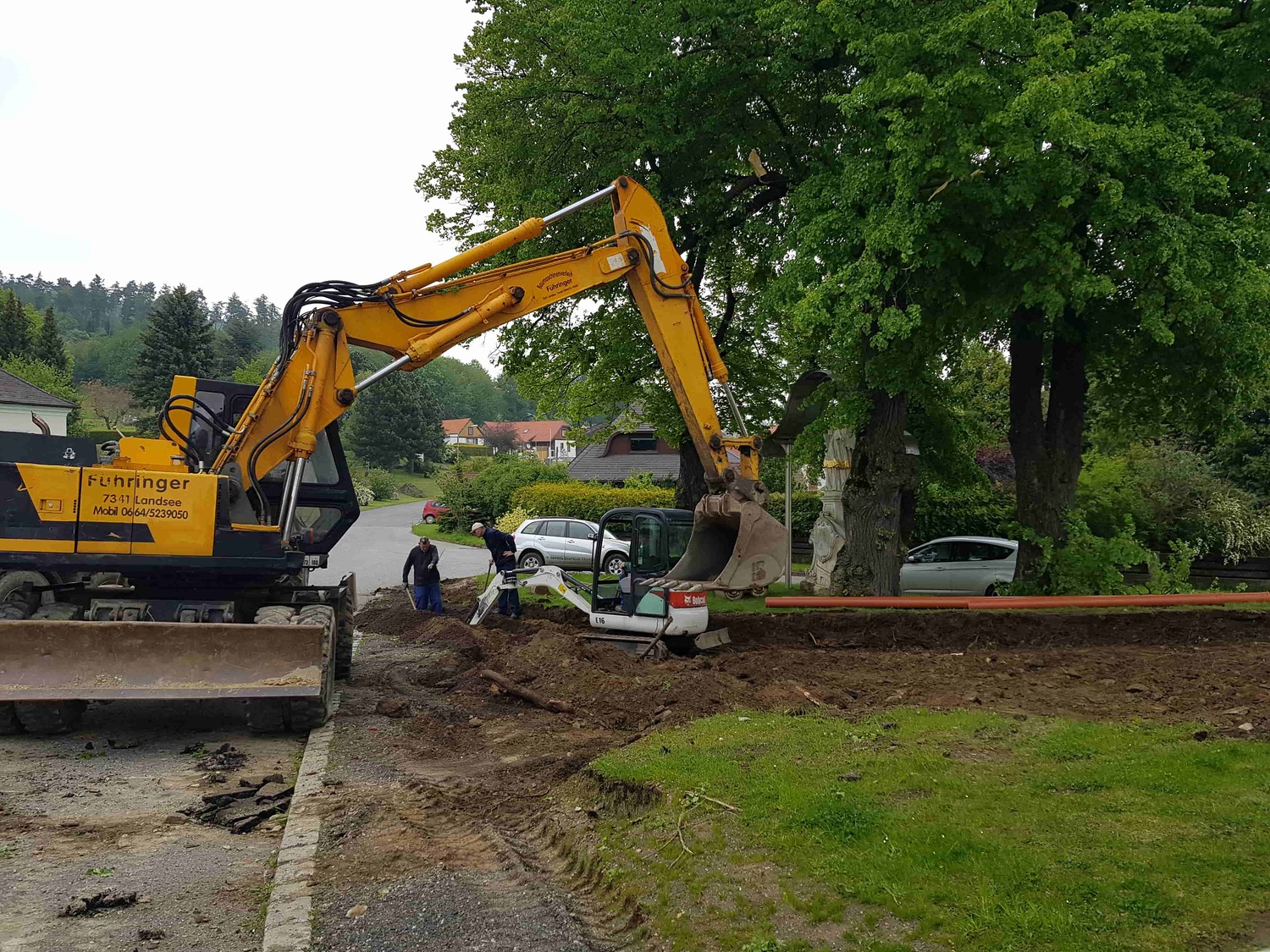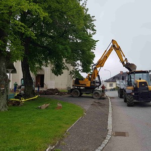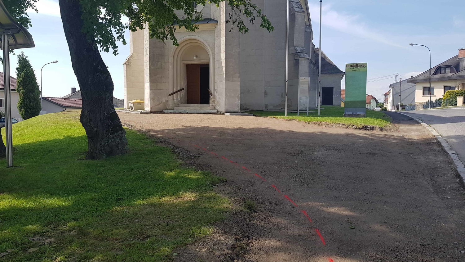 Der Vorplatz bei unserer Kirche wird neu gemacht. Die Gemeinde kümmert sich um die Erdarbeiten sowie um die anschließenden Asphaltierarbeiten von Vorplatz und Gehsteig.
