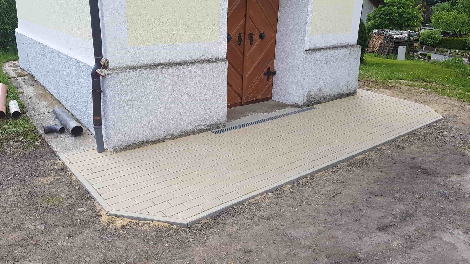 Bei unserer Filialkirche in der Blumau wurde der Vorplatz gepflastert. Die weitere Fläche wird asphaltiert.