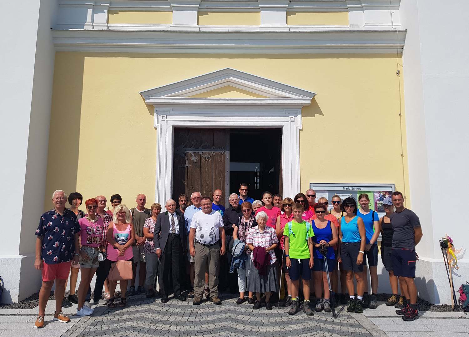 Unsere Fußwallfahrt führte uns heuer durch die Bucklige Welt nach Maria Schnee, Kaltenberg. 18 Pilger machten sich gestärkt mit dem Segen um 6 Uhr Früh auf den Weg. Bei den Andachten unterwegs war es möglich sich zu besinnen und gemeinsam zu beten. Bei der Wallfahrtskirche angekommen, verdoppelte sich die Gruppe um die Hl. Messe zu feiern. Beim Mittagessen fand die Wallfahrt einen gemütlichen Ausklang.