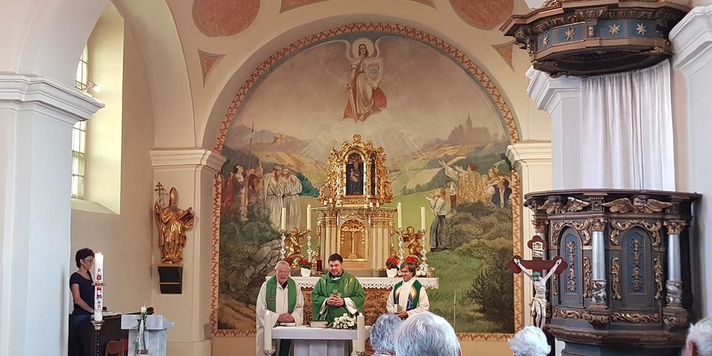 Am letzten Freitag im August wurde unsere Pfarrgemeinde von Neupriester Julian Heissenberger überrascht. Der Neupriester feierte somit seine erste Eucharistiefeier in der Pfarrkirche Landsee gemeinsam mit Prälat Johann Bauer und Kaplan von Kirchschlag Rochus Hetzendorfer.